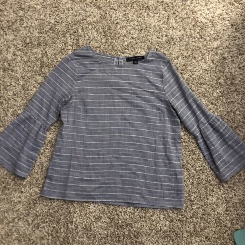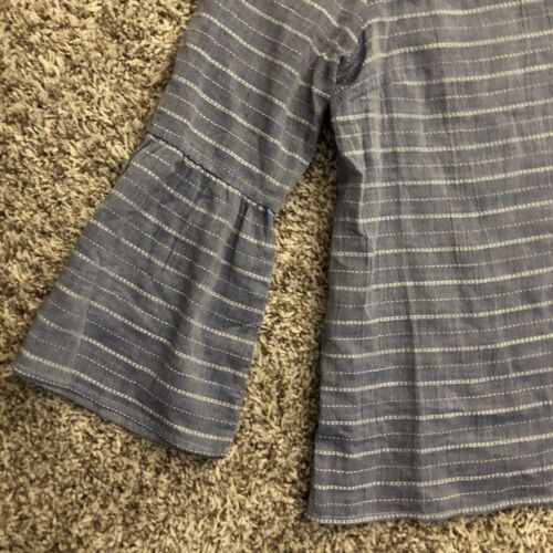 Tommy Hilfiger Blouse Petite Size Small blue white stripes cotton Bell Sleeve