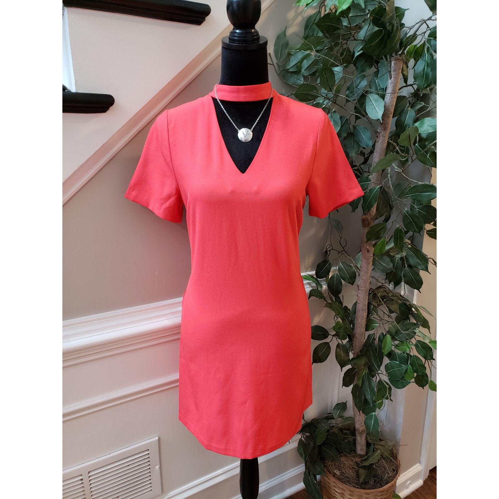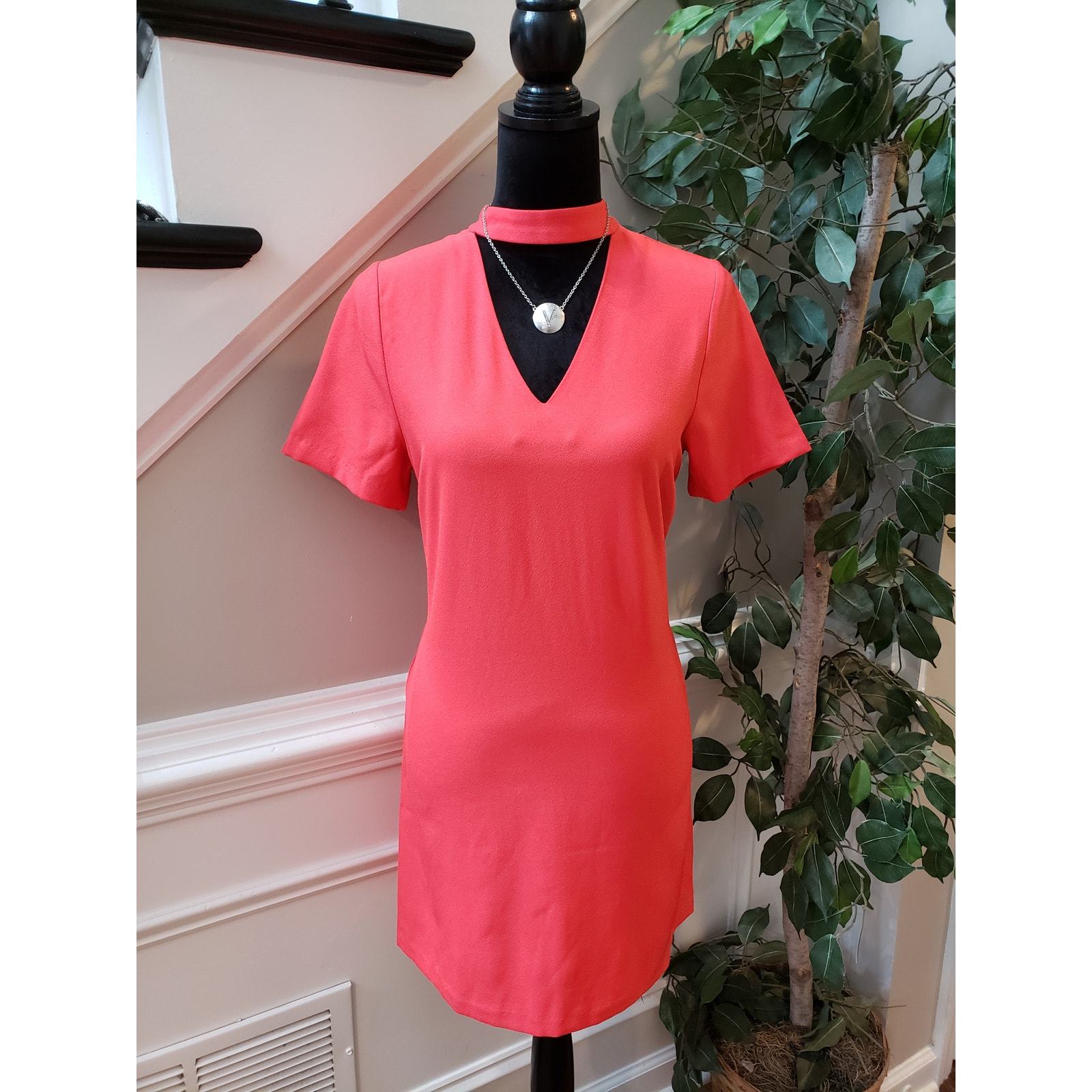 Bishop + Young Shift Dress Women's Size Small Pink Back Zip Short Sleeve V Neck