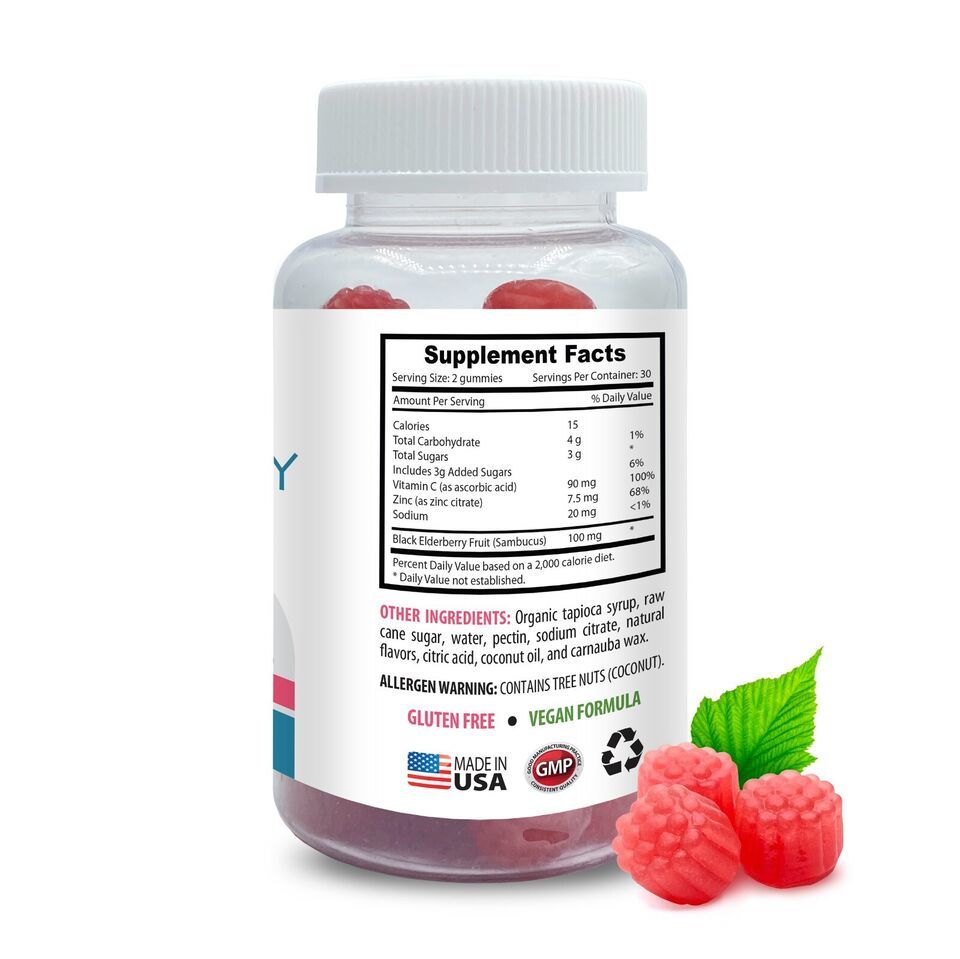 ELDERBERRY GUMMIES: Introducing our delectable Elderberry Gummies Supplement, infused with the delightful flavor of raspberries! Crafted with 100% natural ingredients, our Elderberry Gummies are bursting with immune-boosting antioxidants and vitamins that can help fortify your body's defense system.