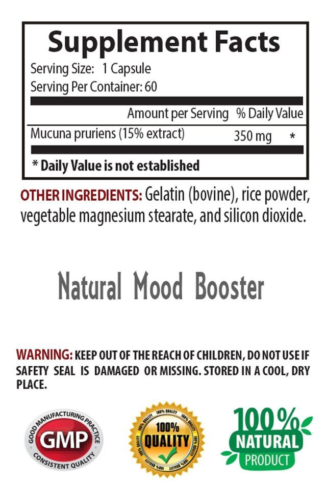 MUCUNA PRURIENS EXTRACT AS NATURAL ENERGY BOOSTER: Mucuna Pruriens Supplement is a natural way to support healthy energy levels without the crash associated with other supplements. Energy is not only important for mood but also for cognitive function and physical strength. By supporting healthy energy levels, Mucuna pruriens may contribute to sustained energy throughout the day.