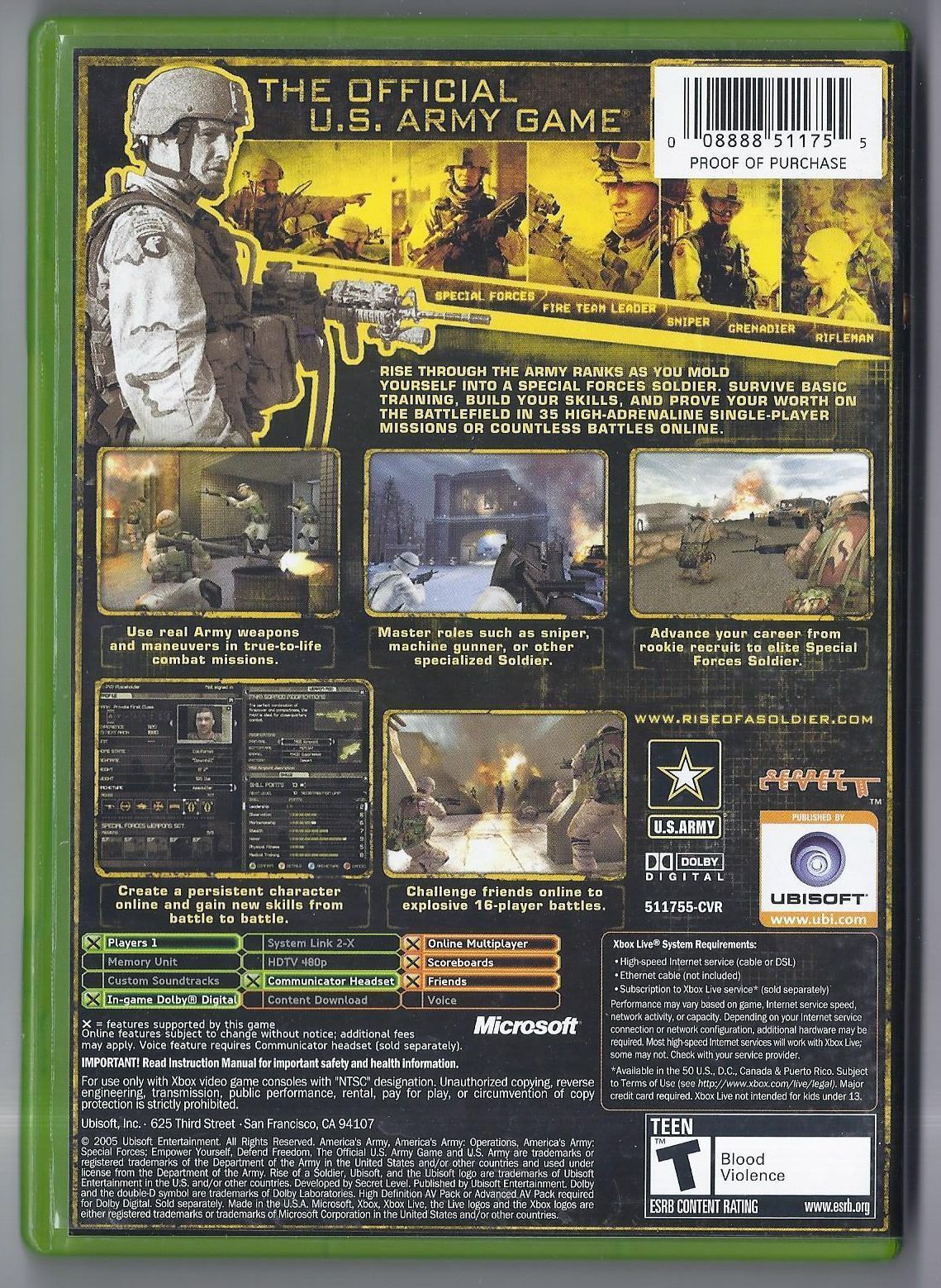 Microsoft xbox Americas Army Rise of a Soldier Game Rare