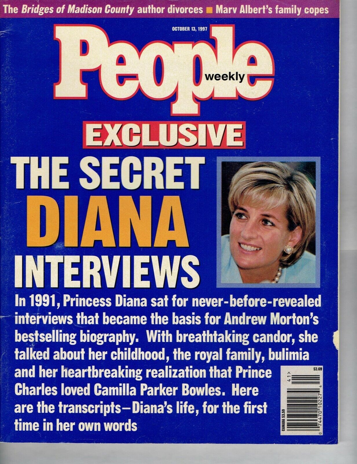 For Sale is a Rare and Hard to Find People Weekly Magazine Princess Diana October 13 1997. its in Very good USED condition just some minor handling wear as shown in the photos. Please ask Any and All Questions prior to purchasing. Fast Same or Next day shipping with Free Delivery Confirmation within the U.S. Payment Due within 7 days of purchase (if you need more time please let us know In advance) we love to combine shipping which is always a Yes and Most of the time Additional Items Ship for free.