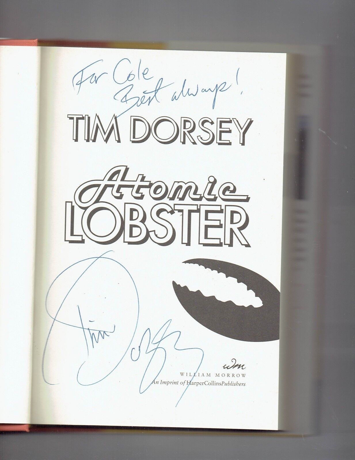 For Sale is a Rare and Very Hard to FInd Serge Storms: Atomic Lobster Bk. 10 by Tim Dorsey (2008, Hardcover) Signed. all autographs are obtained in person at games, practices, golf tournaments, airports, theaters, arenas, airports and Signings. it will be accompanied by a COA from our company. Please ask Any and All Questions prior to purchasing. Fast Same or Next day shipping with Free Delivery Confirmation within the U.S. Payment Due within 7 days of purchase (if you need more time please let us know In advance) we love to combine shipping is always a Yes and Most of the time Additional Items Ship for free.