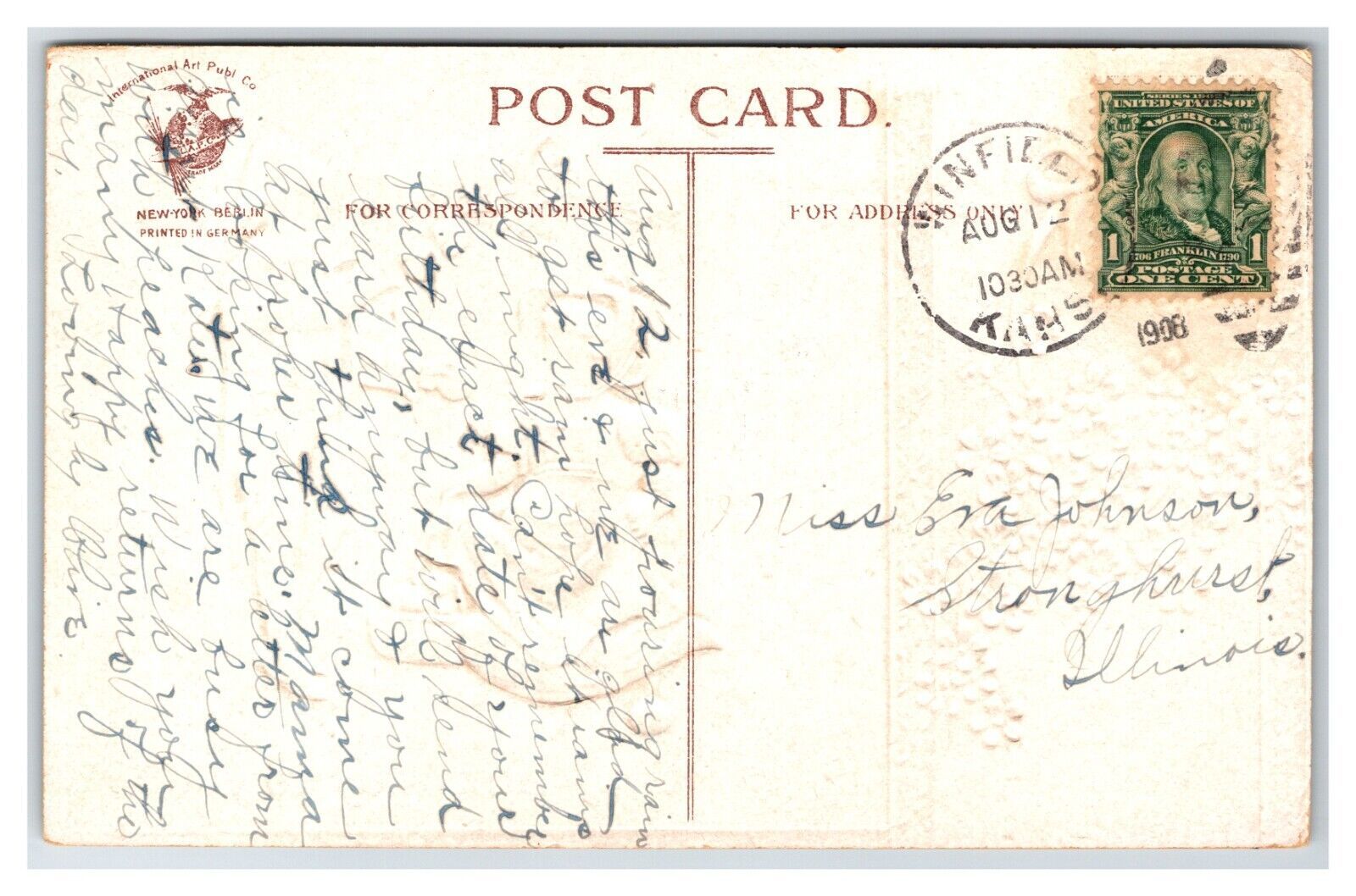 Normal wear associated with an old postcard it might have creases, a corner bump, ink on the front etc. Please see high resolution scans for full condition.