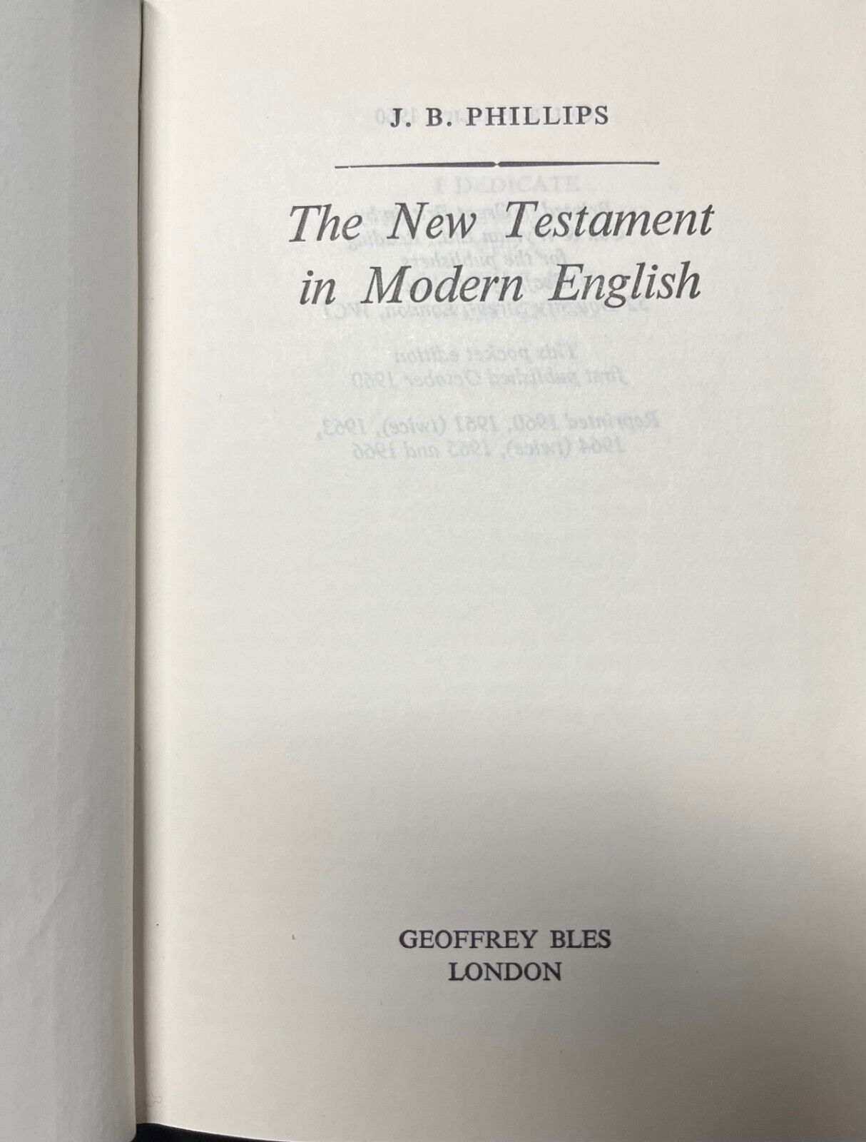 THE NEW TESTAMENT IN MODERN ENGLISH by J.B. PHILLIPS, Cax & Wyman LTD, HC, 1966