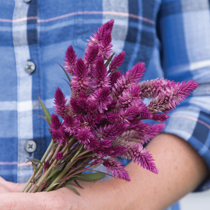 Celosia is exceptional as a cut flower and can be used both fresh and dried. Fresh - Harvest when the flowers are fully developed, and stems are firm at the base of the bloom. Dried - Harvest at the same stage of growth as you would for fresh flowers. Remove all the foliage and hang in a dark, well-ventilated location to dry.