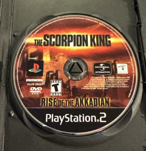 The product is "Scorpion King: Rise of the Akkadian" for the Sony PlayStation 2, released in 2002. Published by Universal Interactive, this action and adventure game is rated T-Teen. It is a single unit game in NTSC-U/C (US/Canada) region code format. Follow the adventures of the Scorpion King in this exciting video game designed for the PlayStation 2 platform.Please look at our store for unique collectibles and quality vintage items.