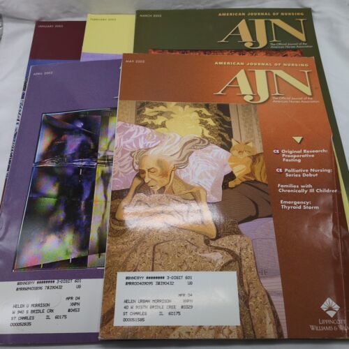 Lot Of (5) AJN American Journal Of Nursing Magazines Jan Feb Mar Apr May 2002