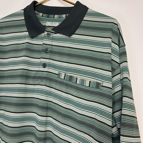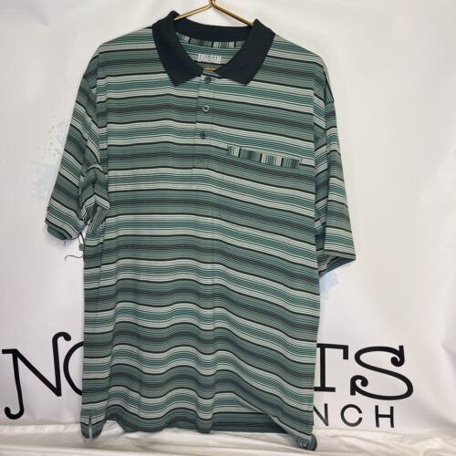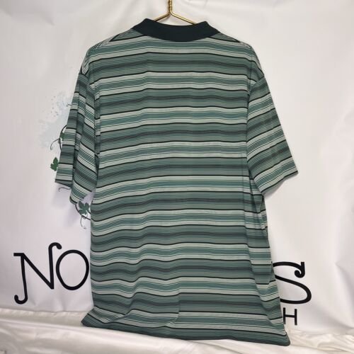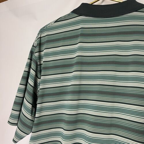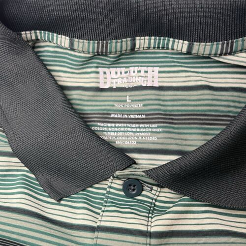 Duluth Trading Co Polo Shirt Mens Green Striped Dry Cooling Pocket Golf Outdoor