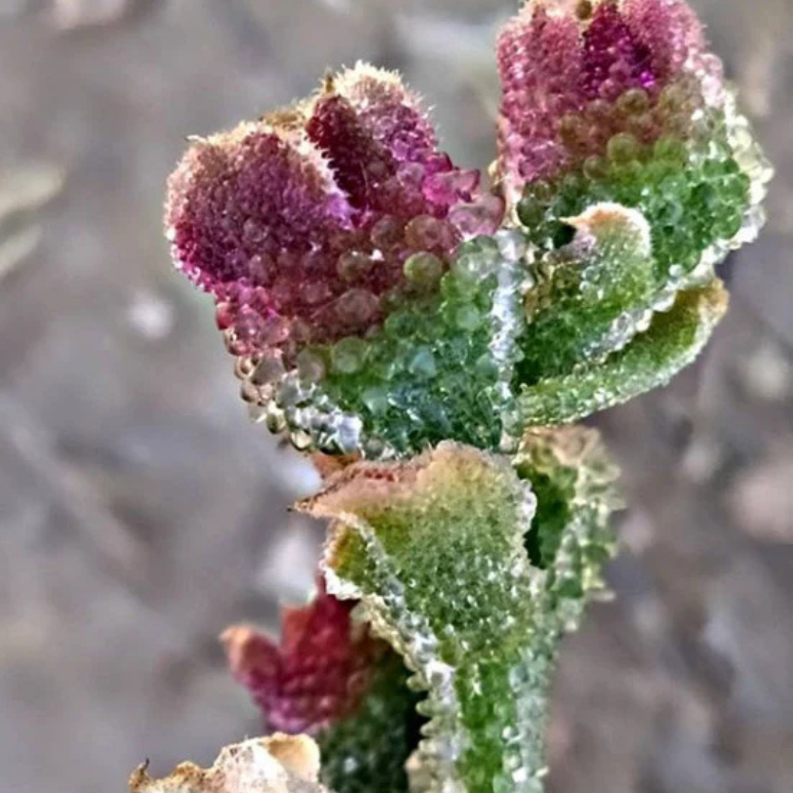 Grow the fascinating and rare Heirloom Mesembryanthemum Crystallinum Succulent, featuring striking, crystal-like structures on its leaves!