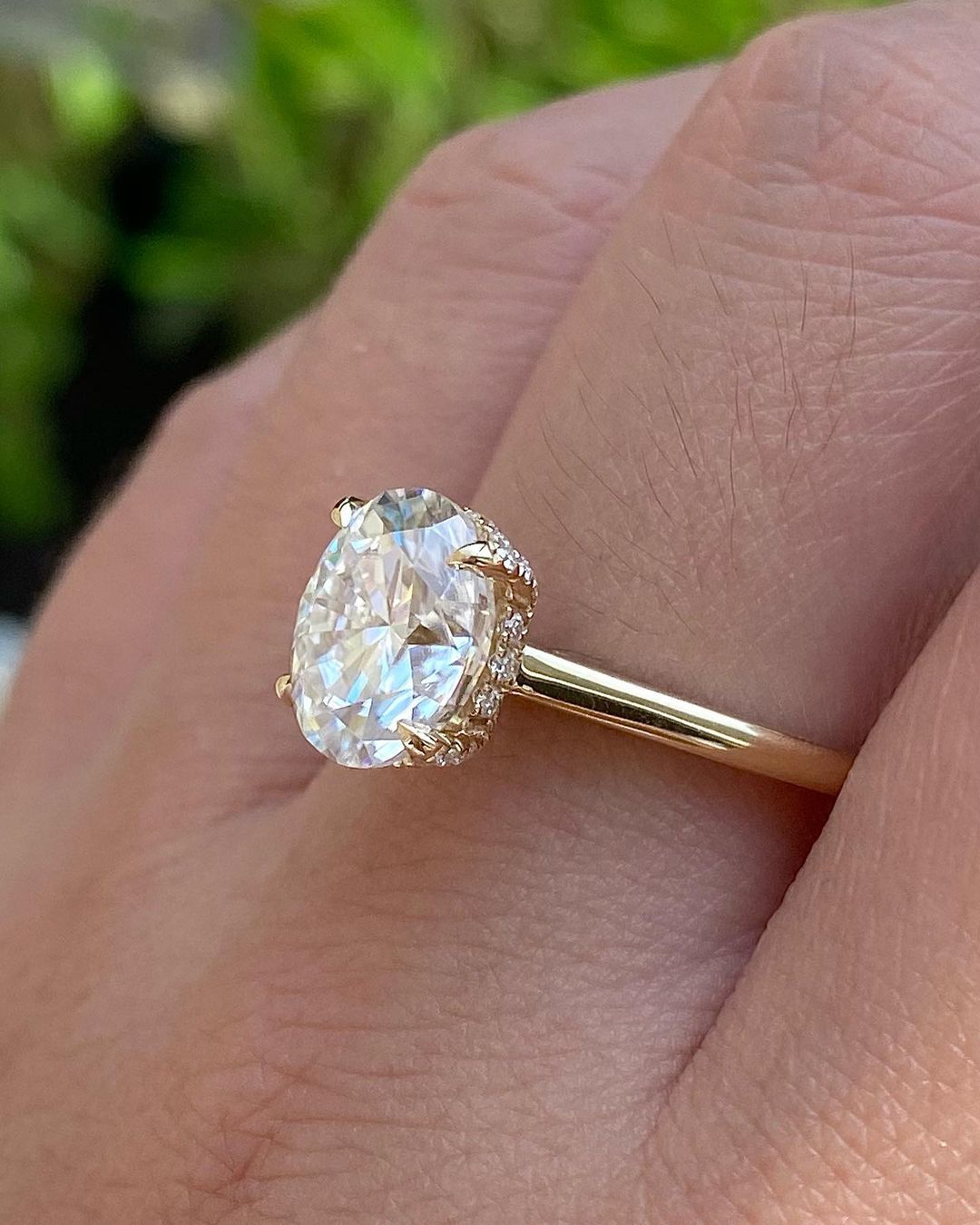 Oval Cut Moissanite Halo Solitaire Ring 925 Silver Moissanite Engagement Ring