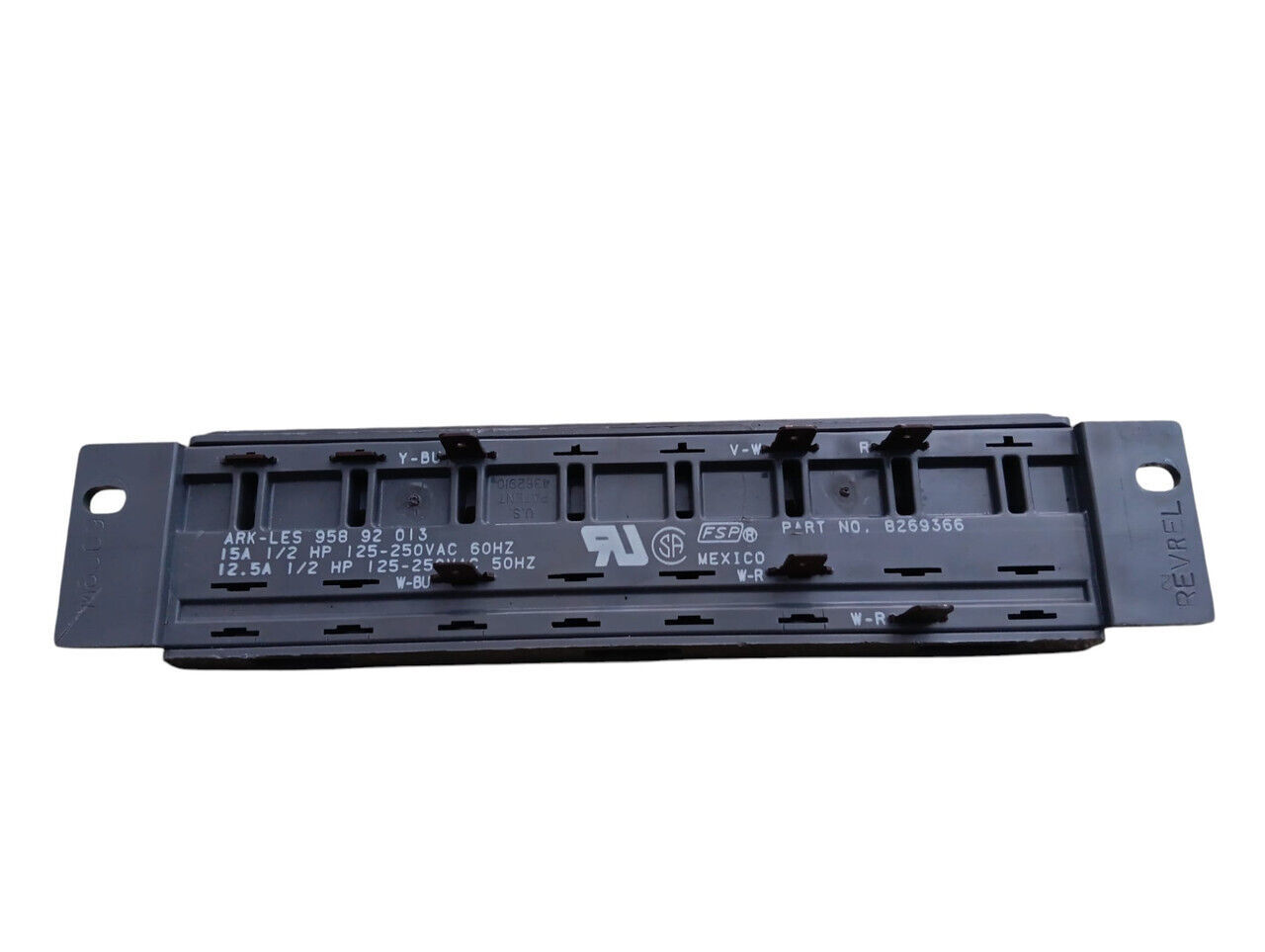 The 8269366 is a door switch for Whirlpool dishwashers, ensuring the door is securely closed to enable the dishwasher to operate.
