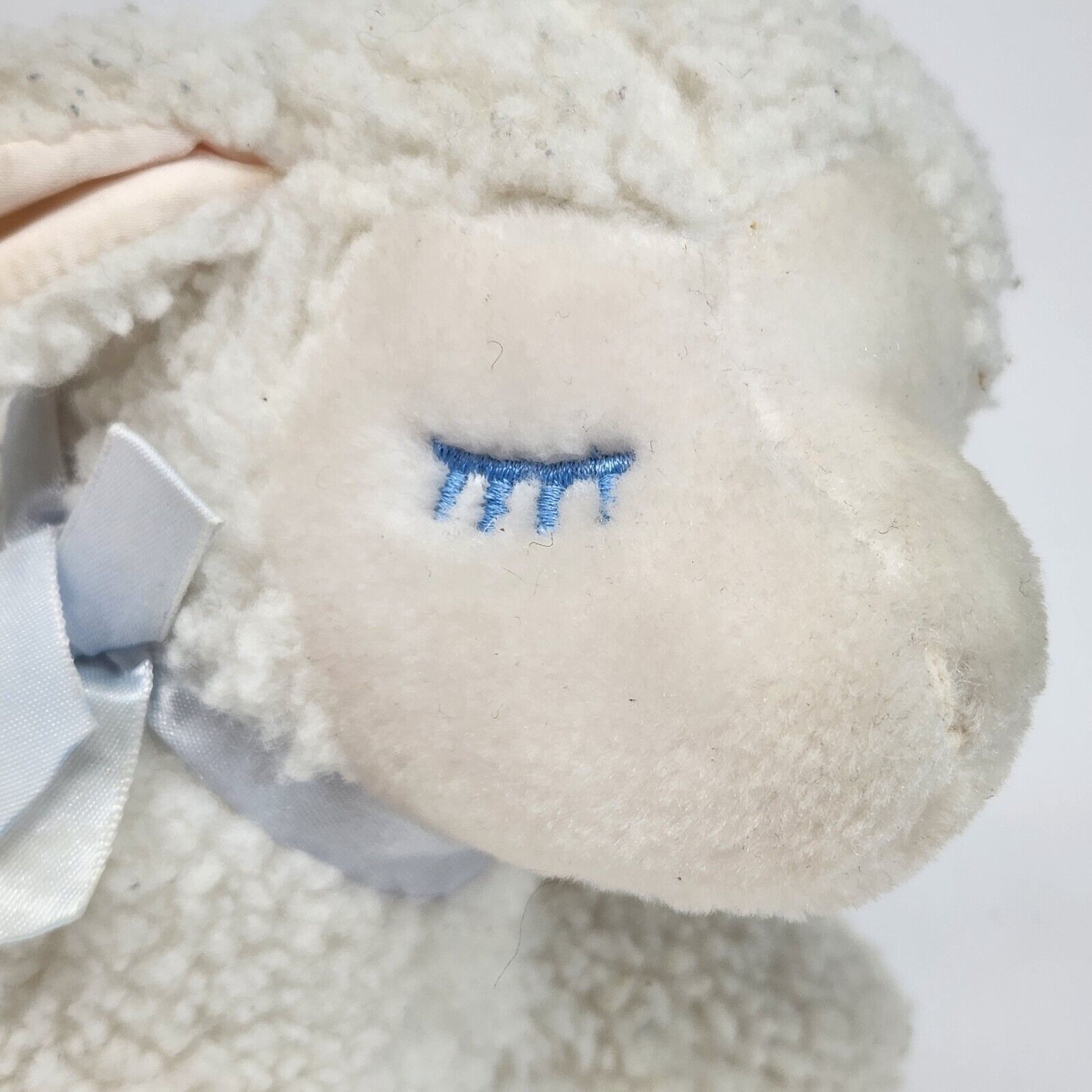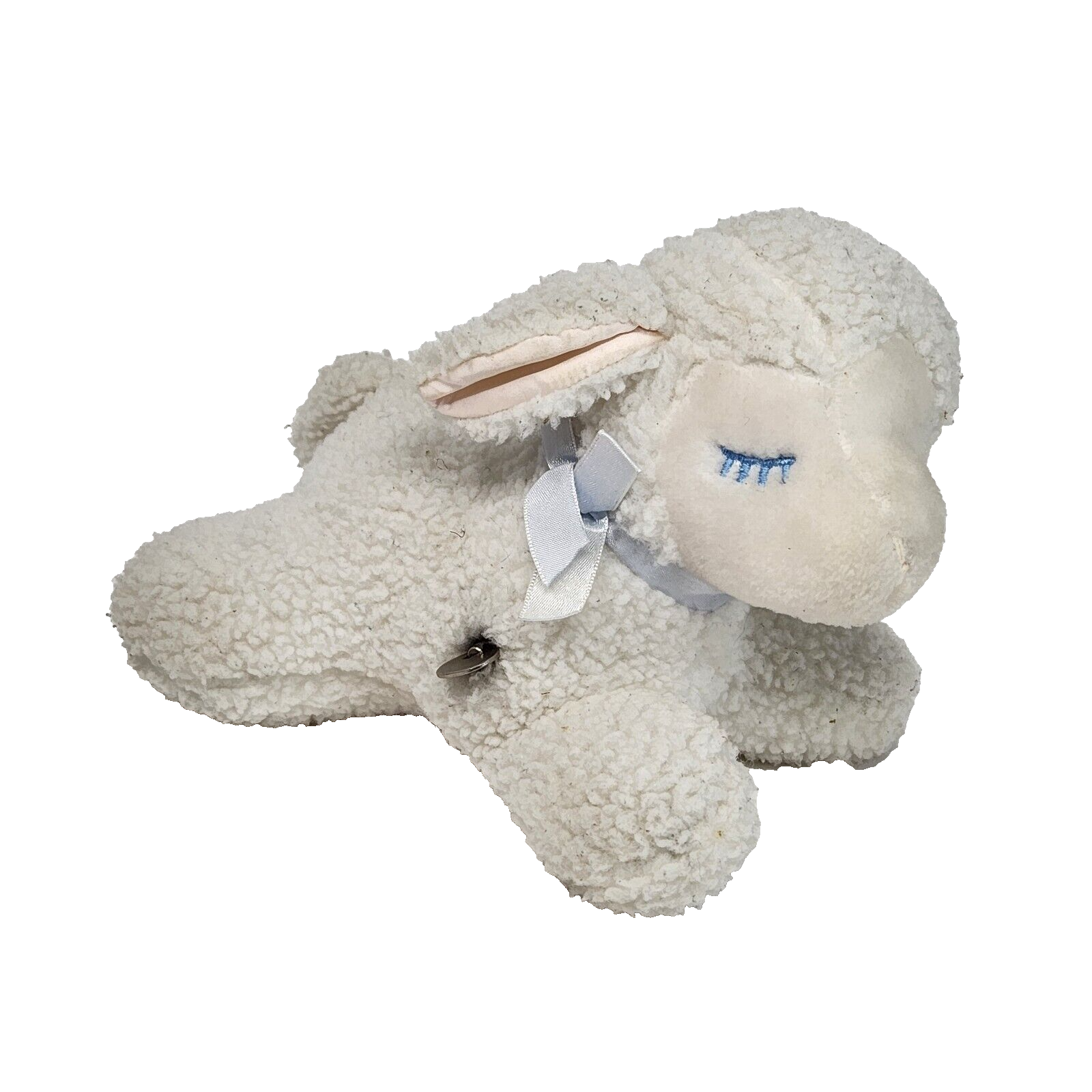 10" VINTAGE EDEN WIND UP MUSICAL WHITE + BLUE LAMB STUFFED ANIMAL PLUSH TOY