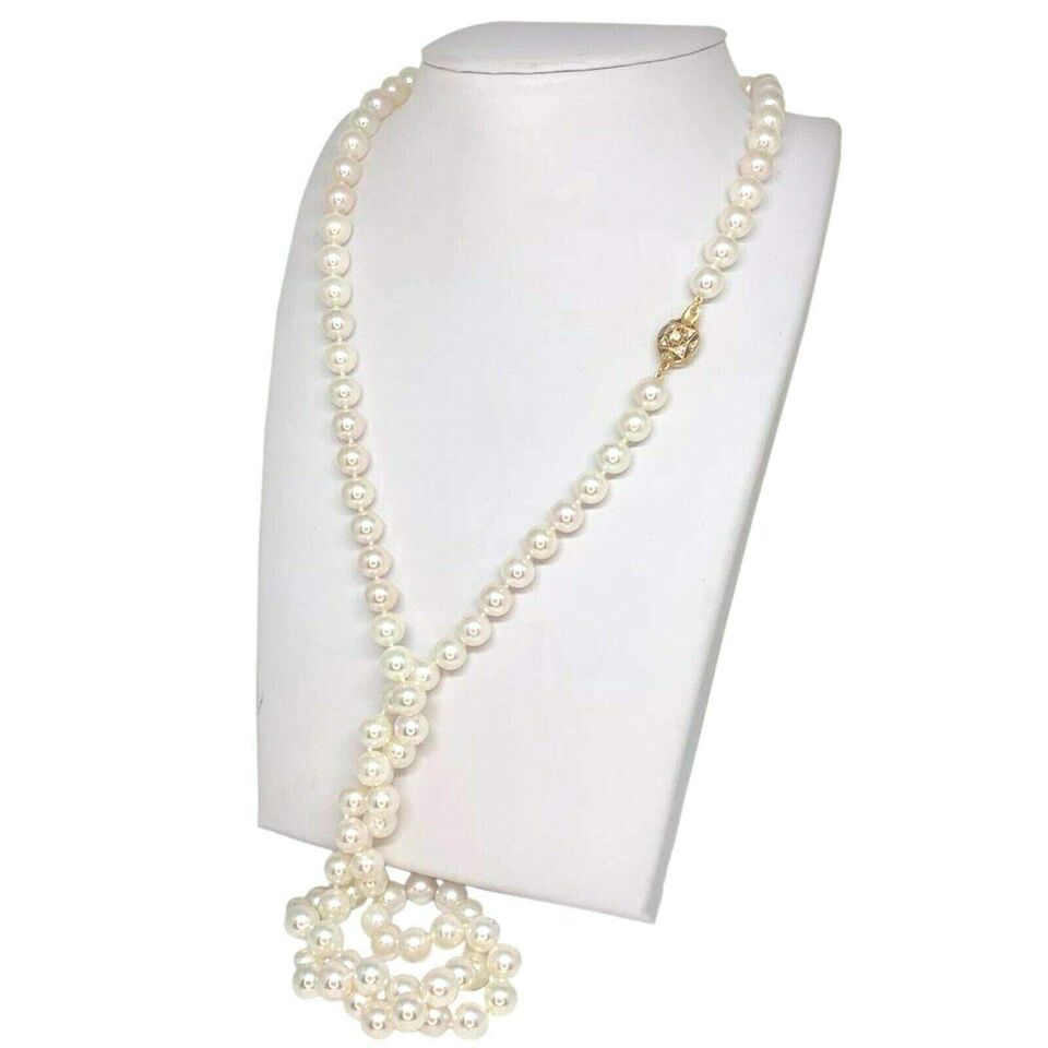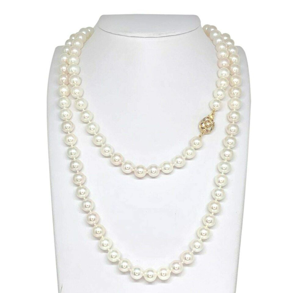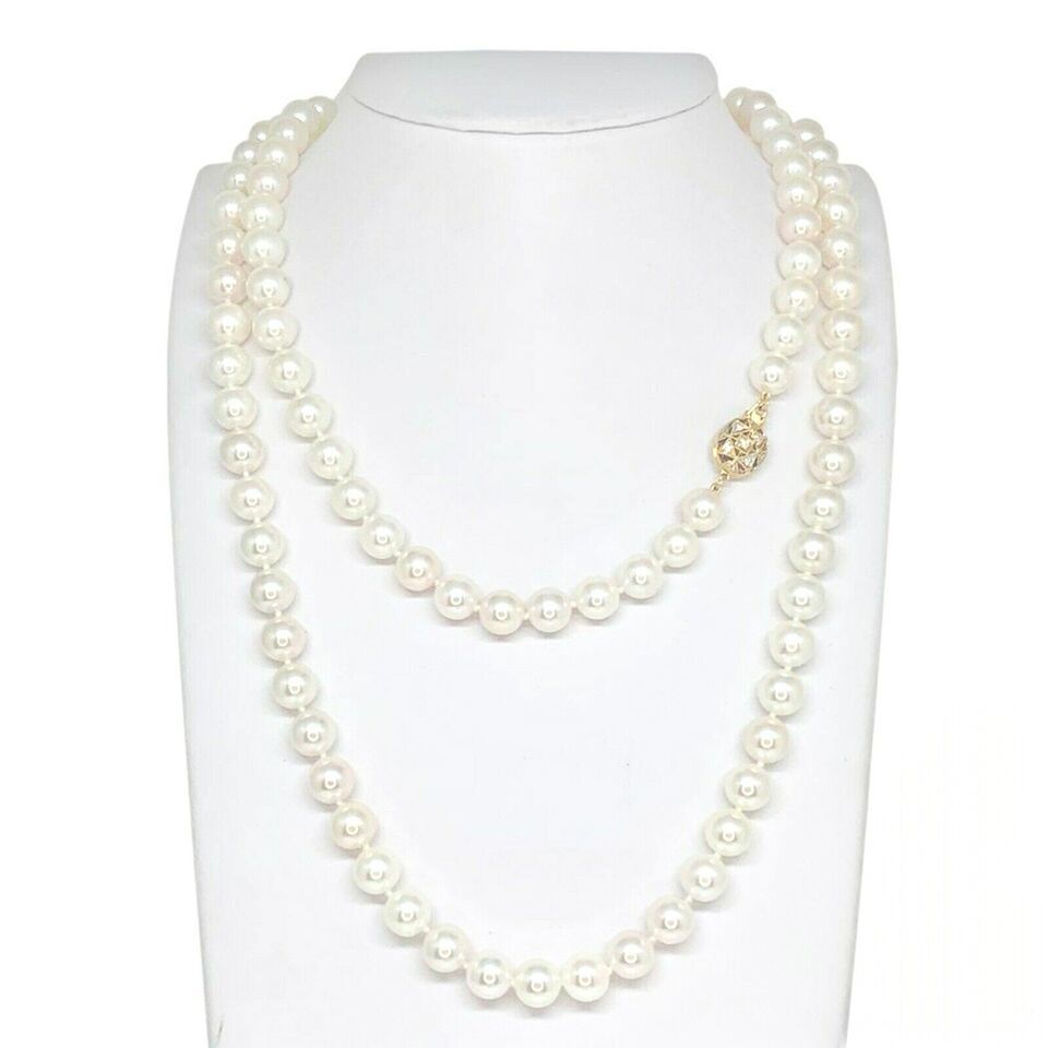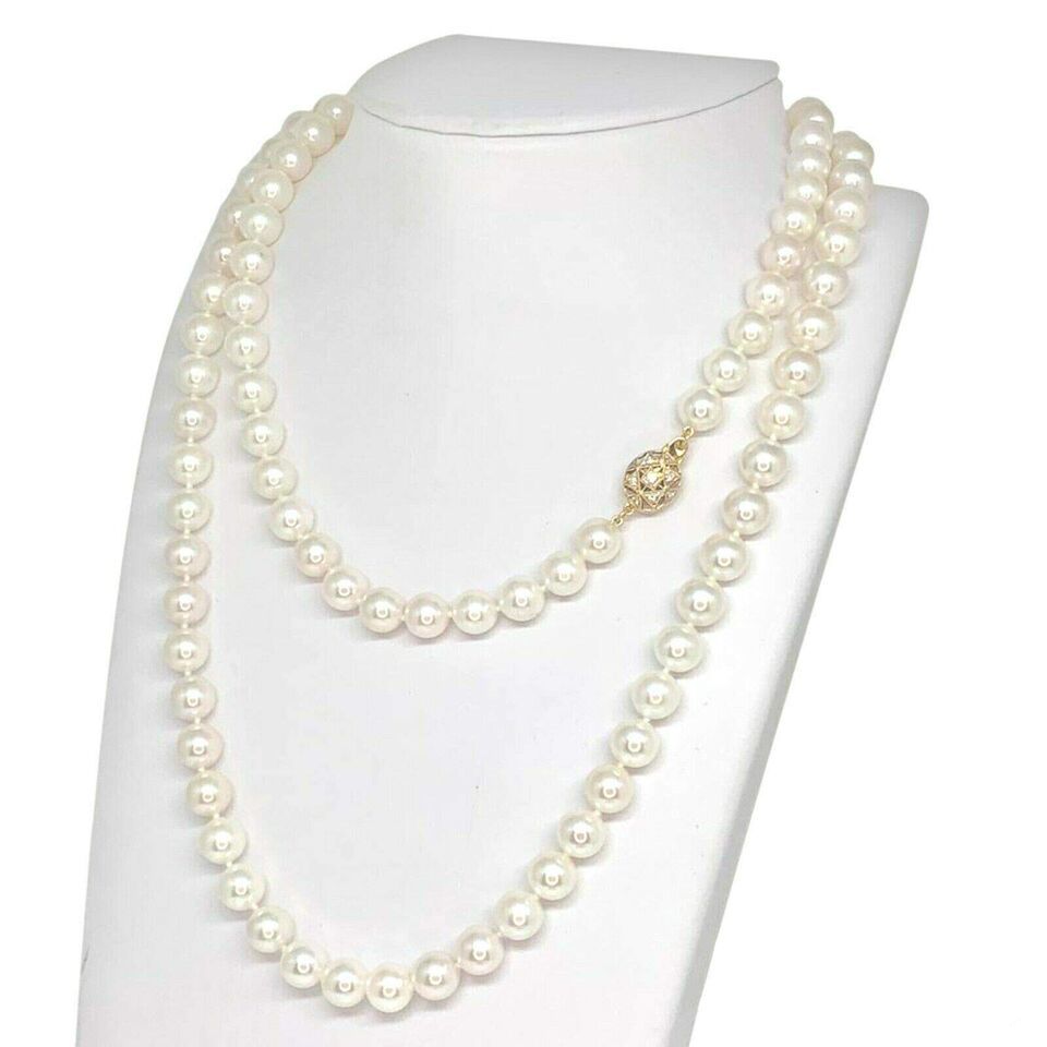 Authenticity Guarantee Diamond Akoya Pearl Necklace 14k Gold 8.5 mm 36 in Ce...
