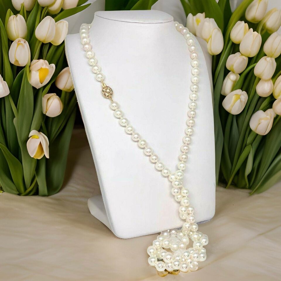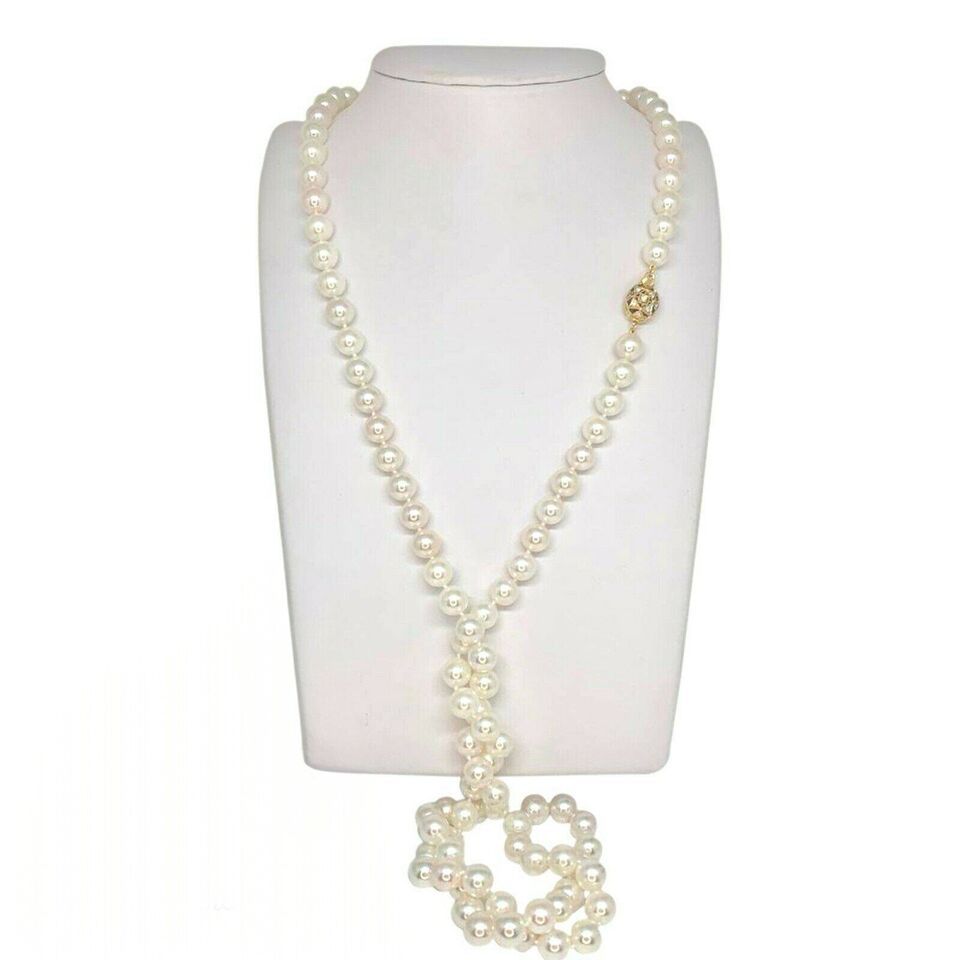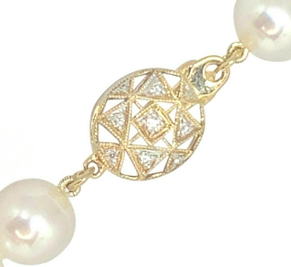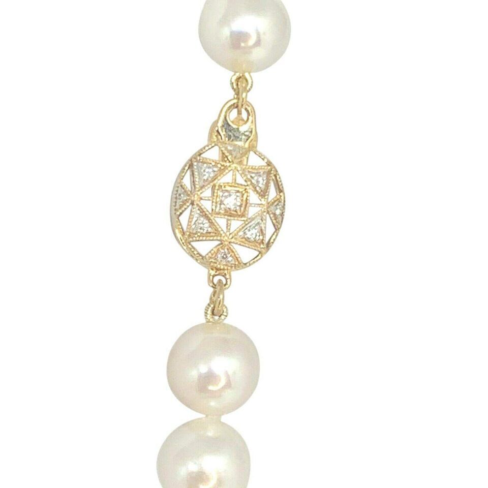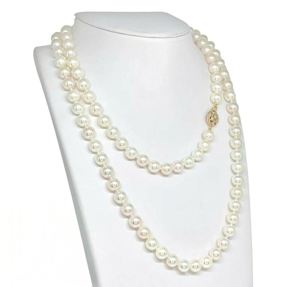 Authenticity Guarantee Diamond Akoya Pearl Necklace 14k Gold 8.5 mm 36 in Ce...