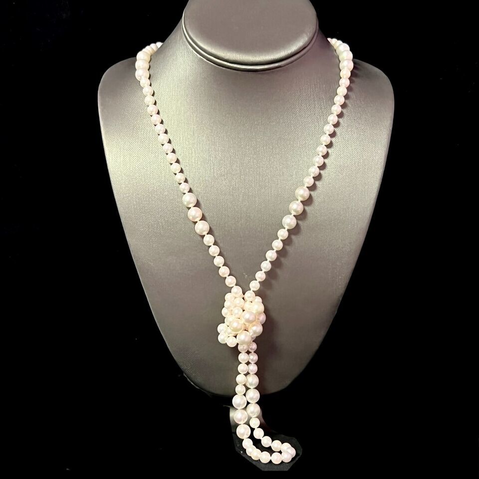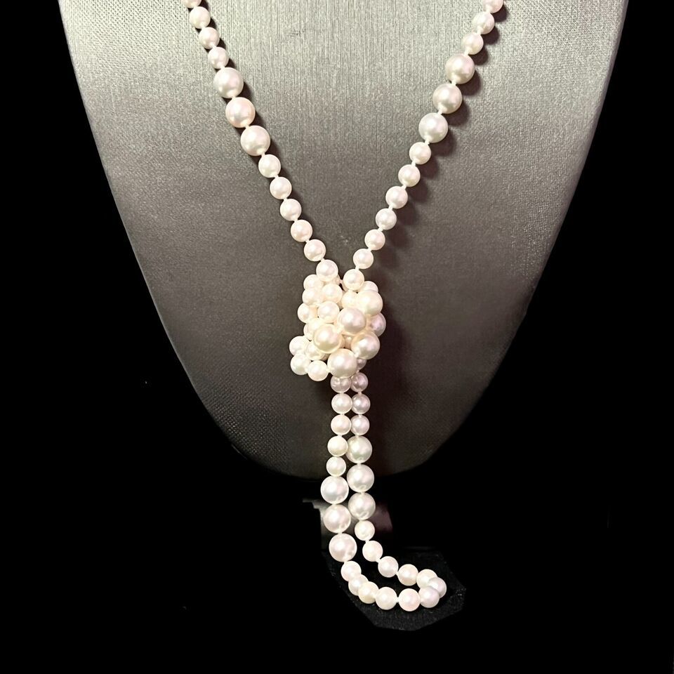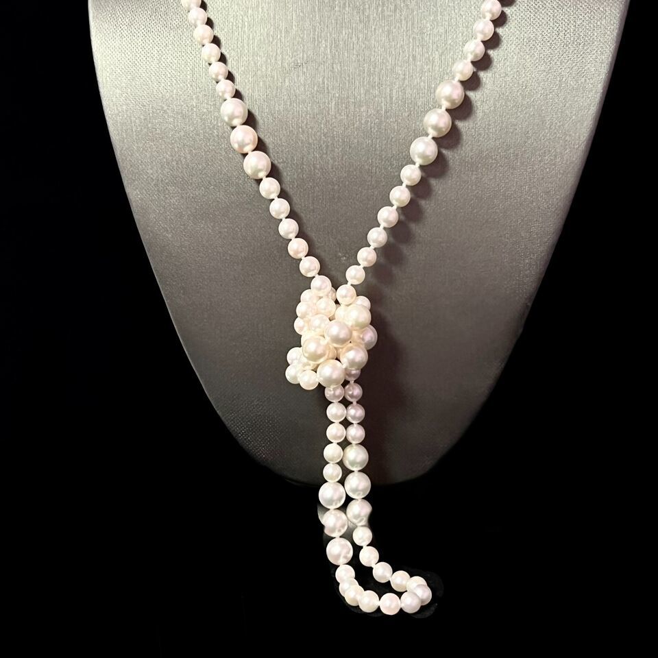 Authenticity Guarantee Akoya Pearls Necklace 38" 14k Y Gold Ball Clasp 8.52 ...