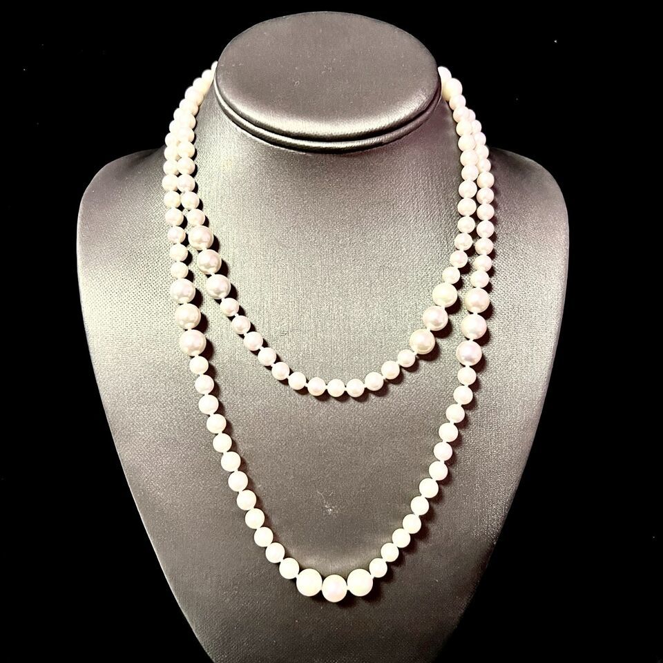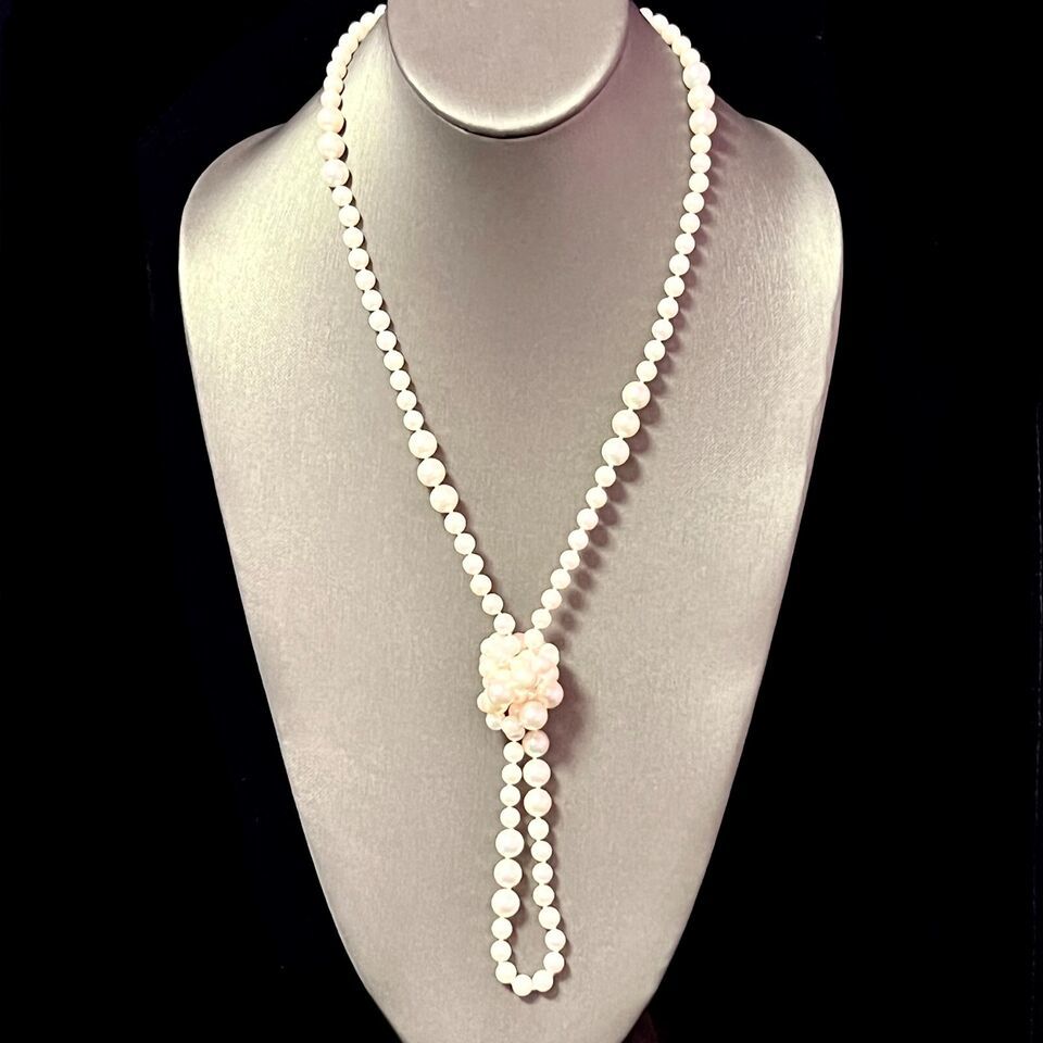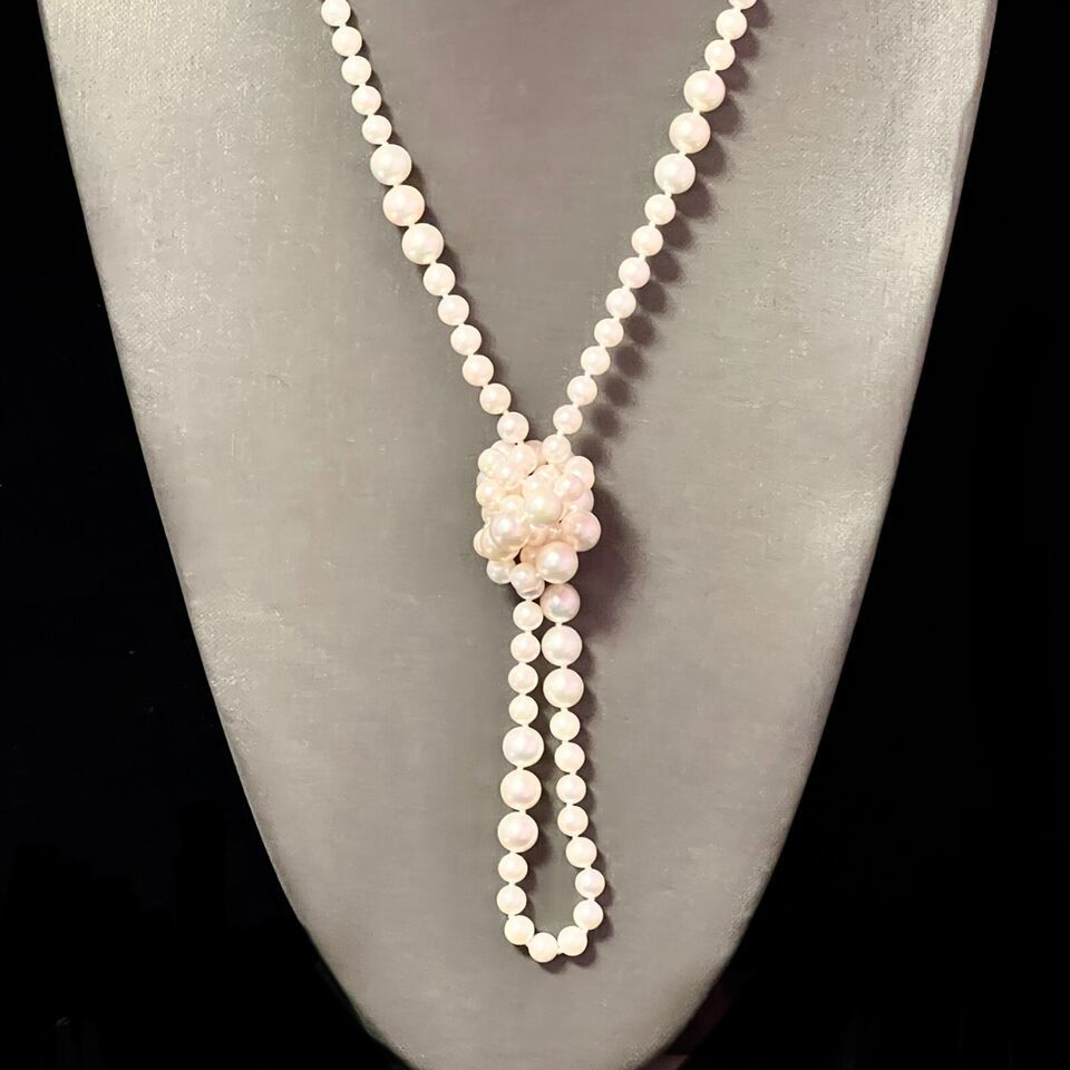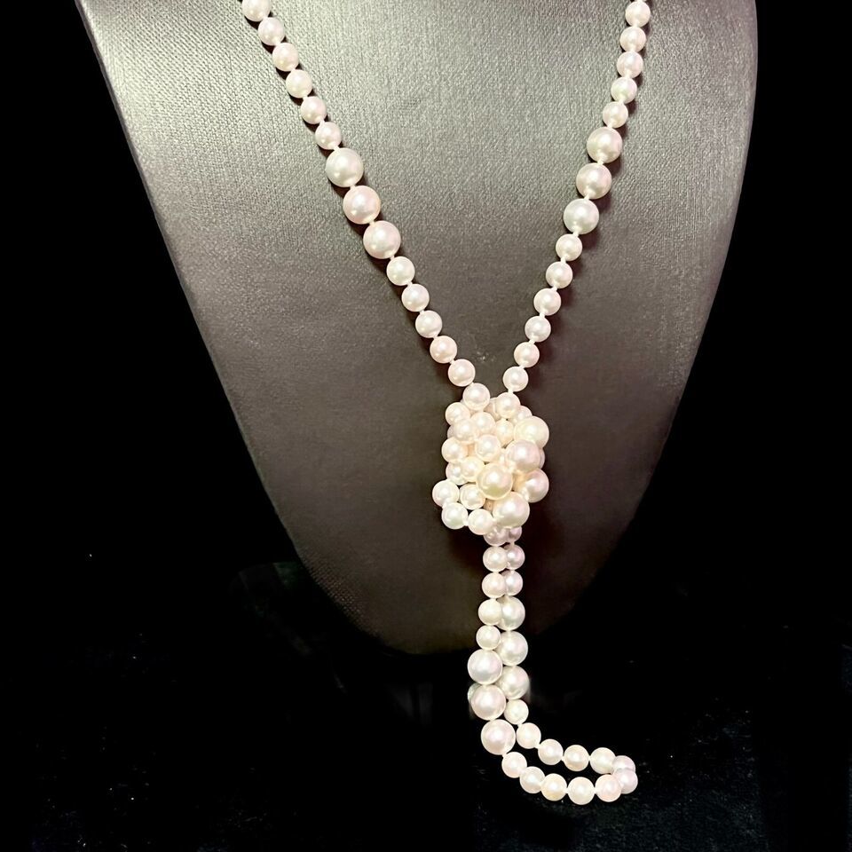 Authenticity Guarantee Akoya Pearls Necklace 38" 14k Y Gold Ball Clasp 8.52 ...