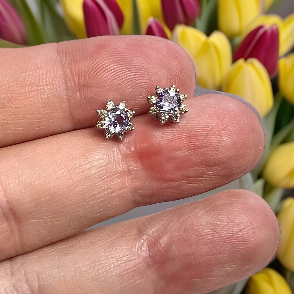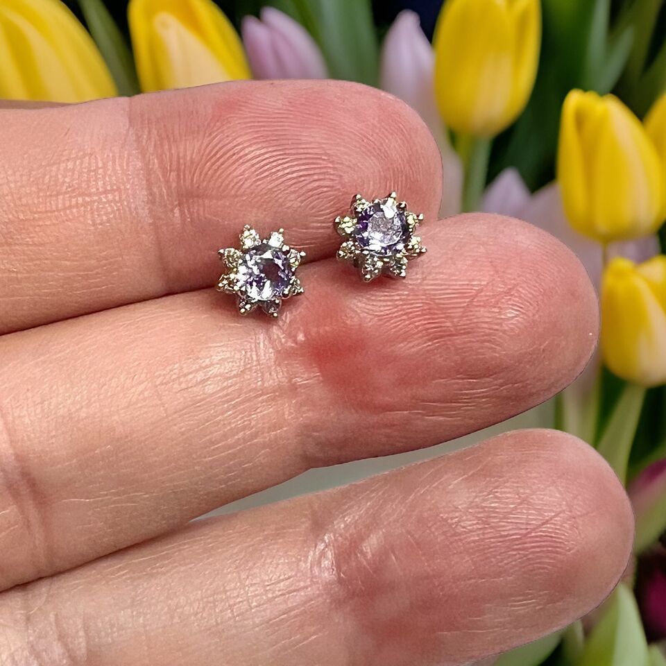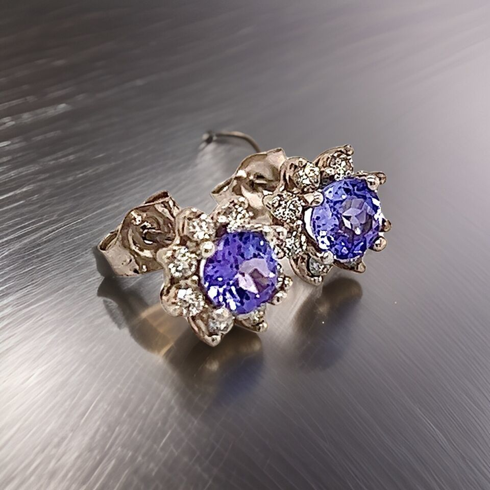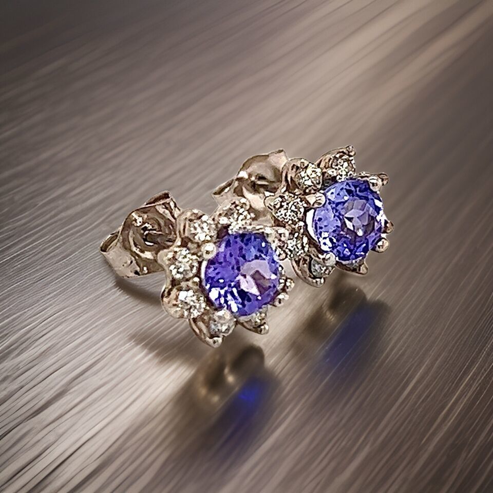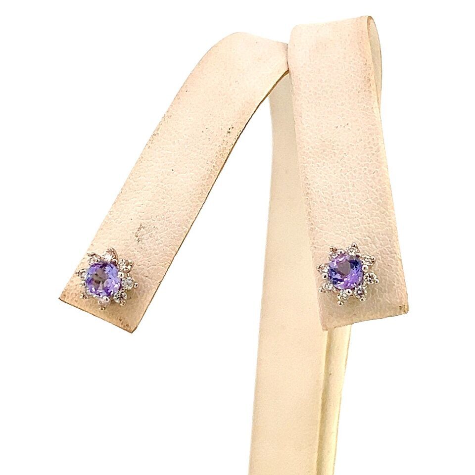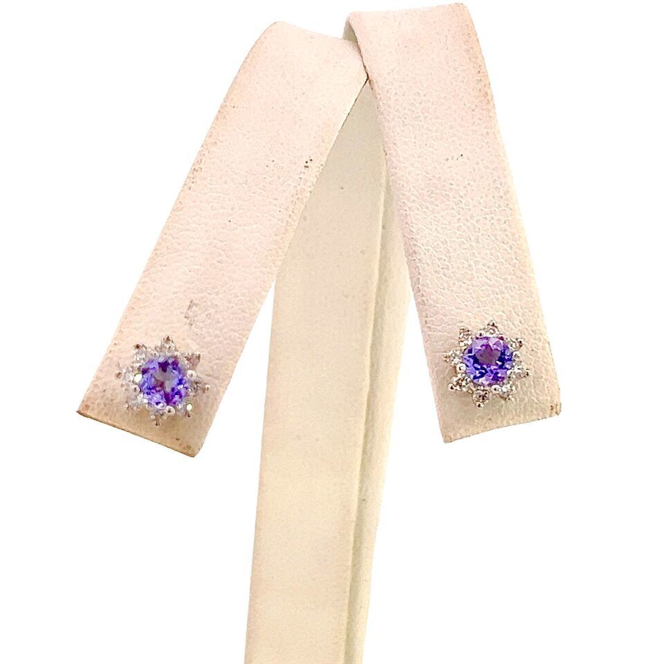 Authenticity Guarantee Natural Sapphire Diamond Halo Earrings 14k WG 1.02 TC...