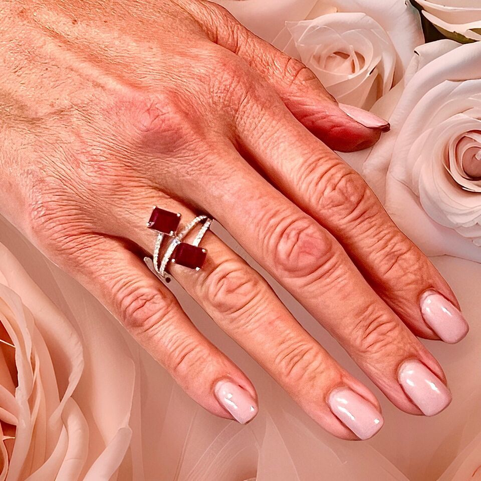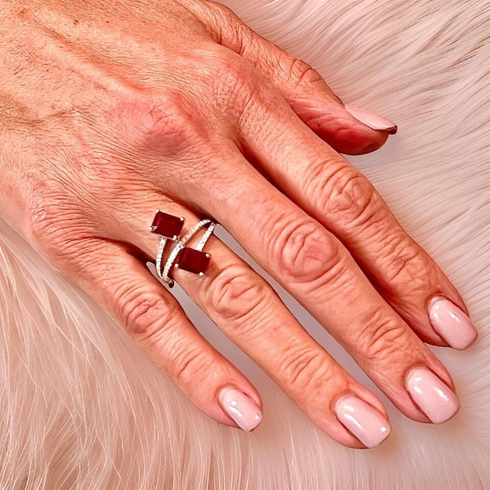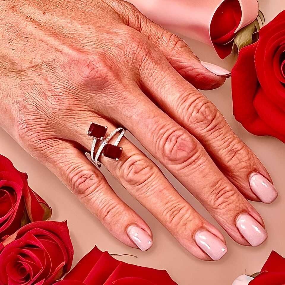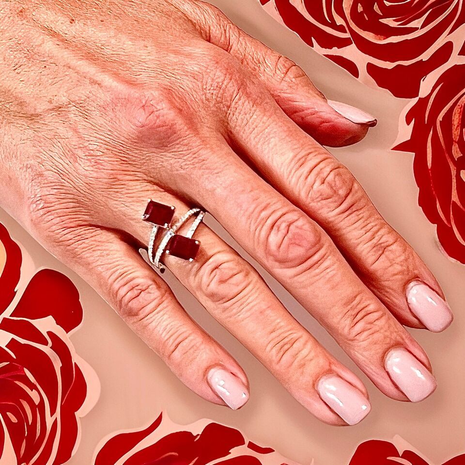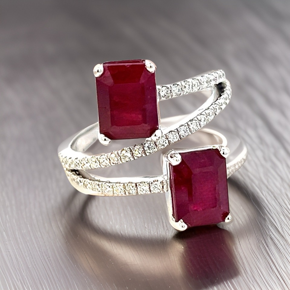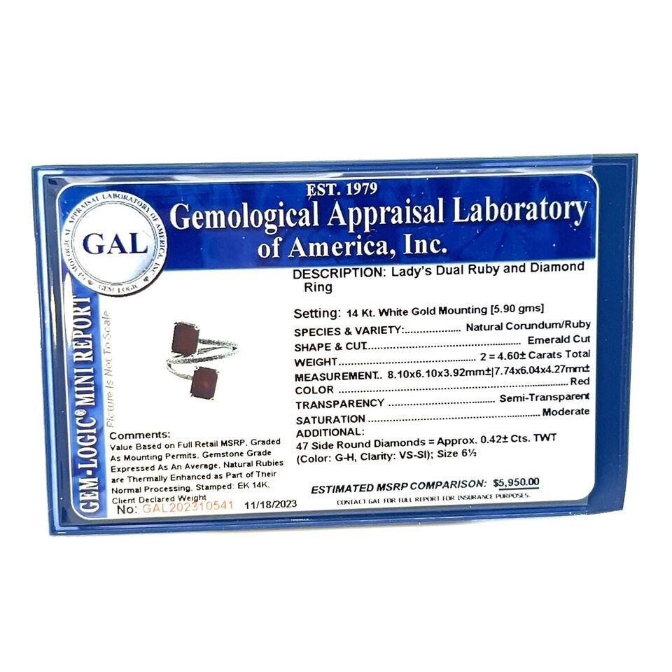 Authenticity Guarantee Natural Dual Ruby Diamond Ring 6.5 14k W Gold 5.02 TC...
