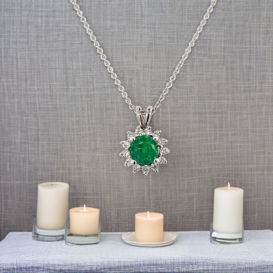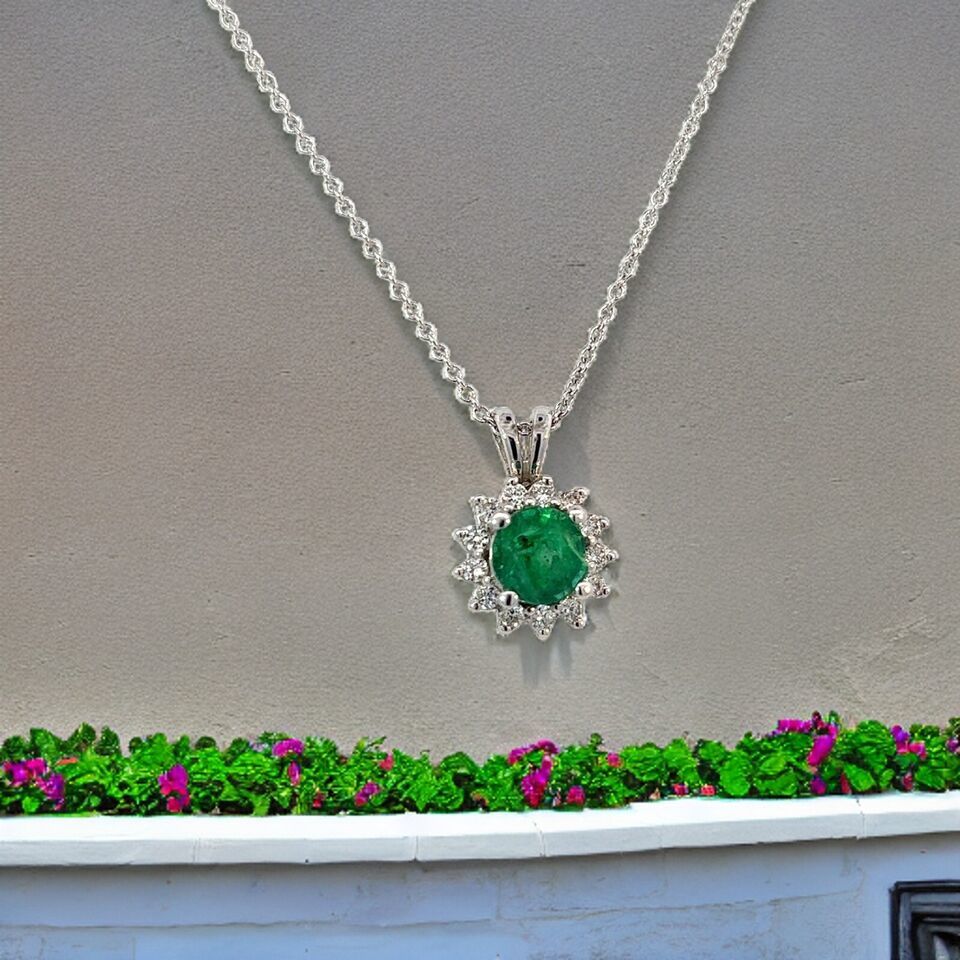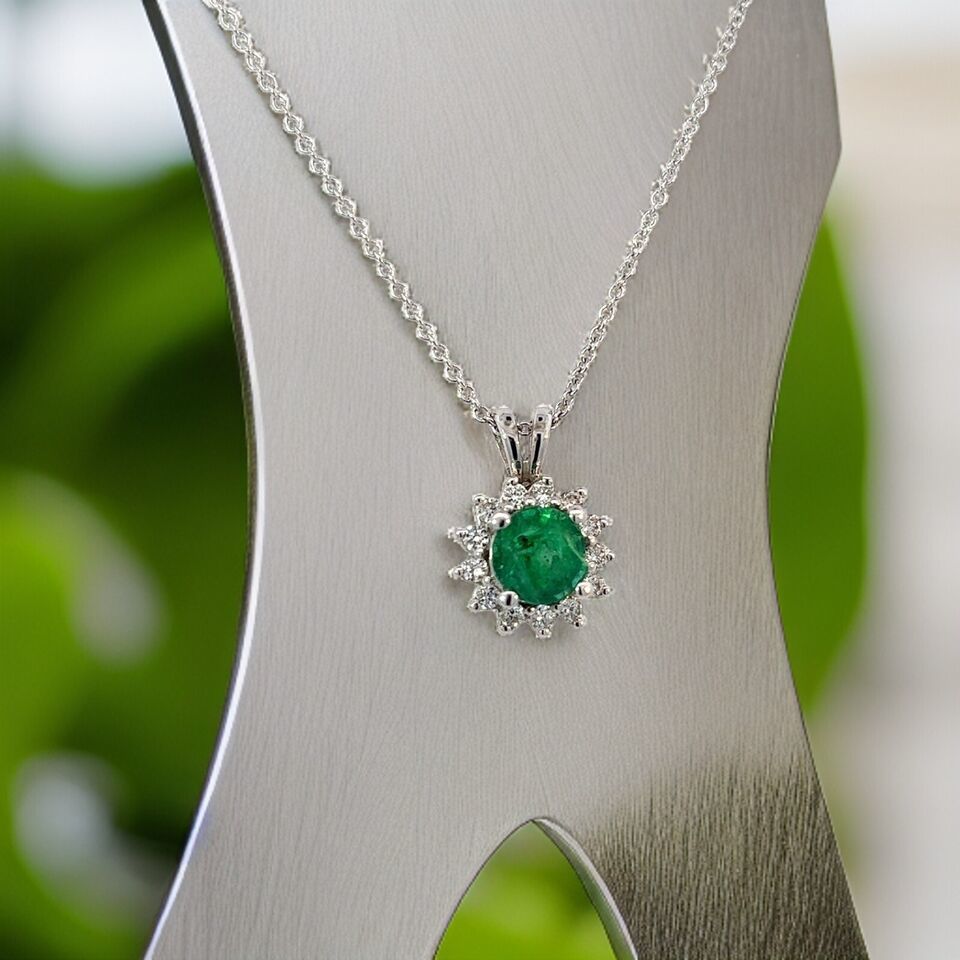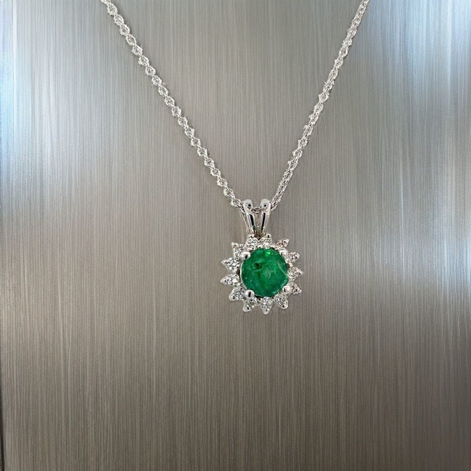 Authenticity Guarantee Natural Emerald Diamond Pendant 17.5" 14k WG 1.35 TCW...