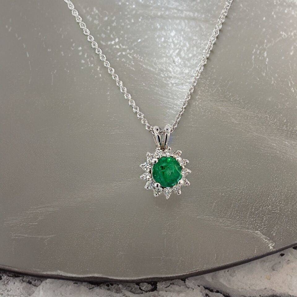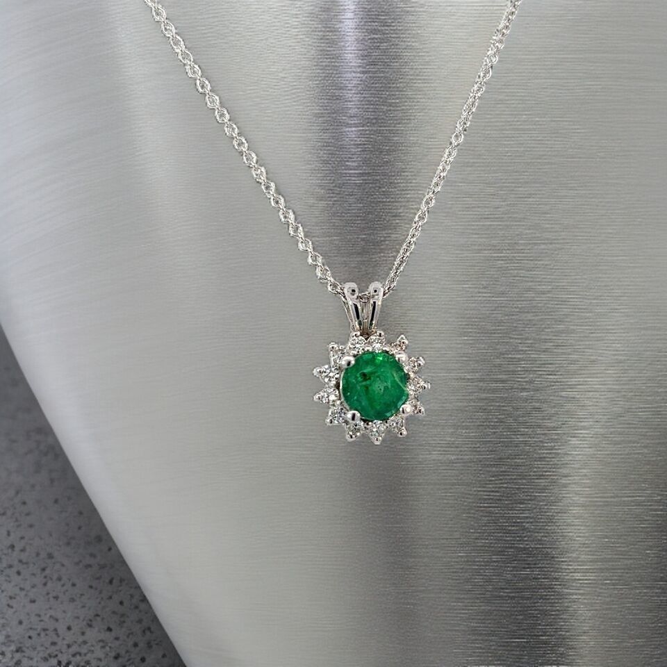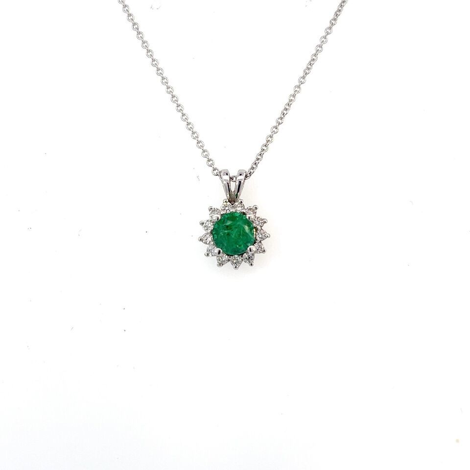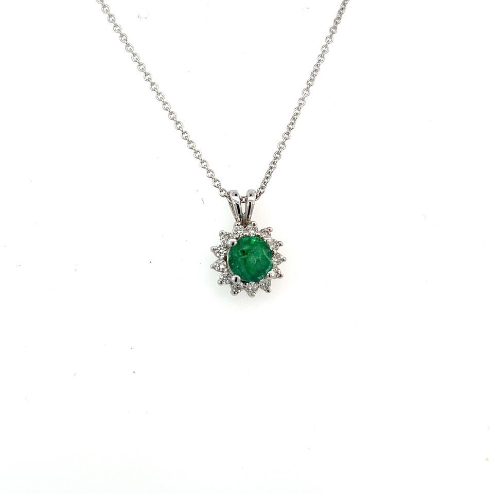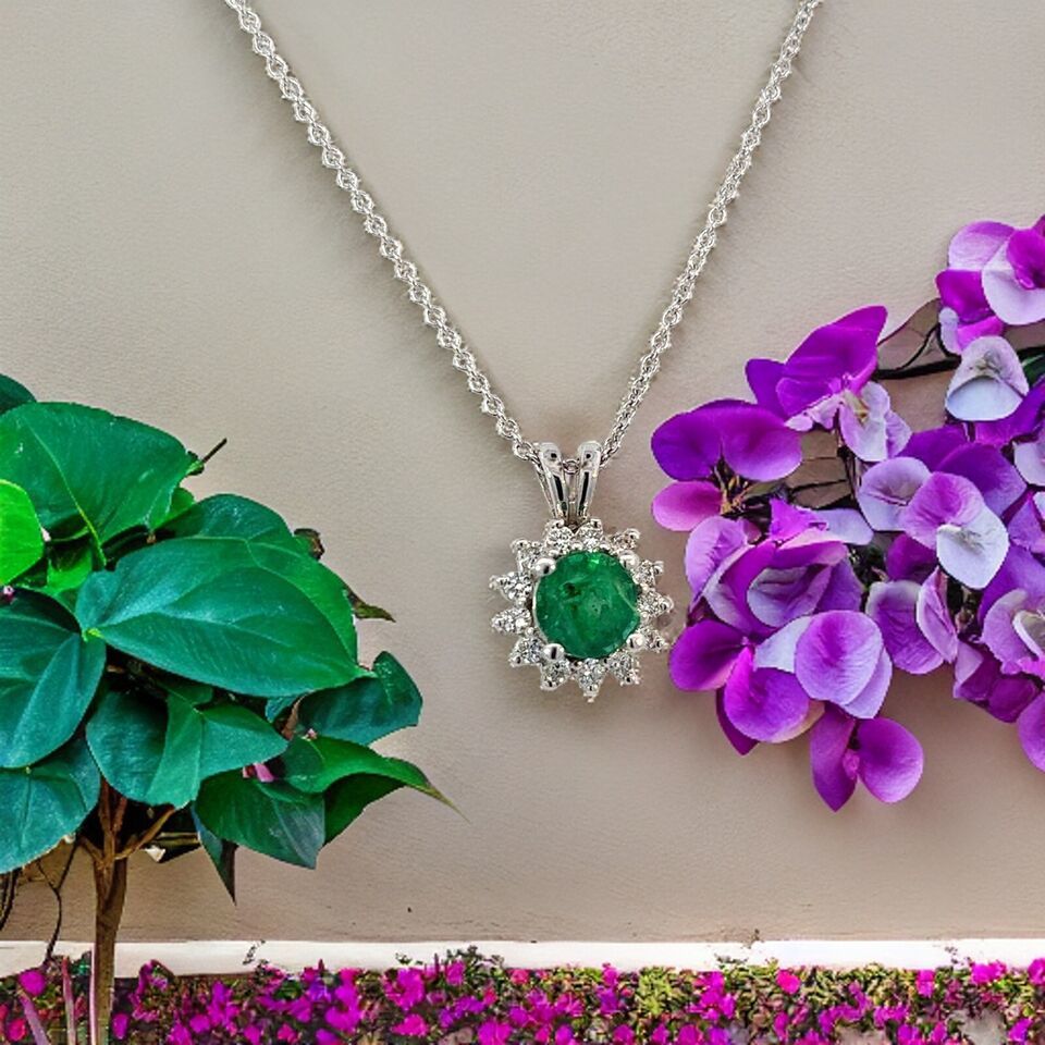 Authenticity Guarantee Natural Emerald Diamond Pendant 17.5" 14k WG 1.35 TCW...