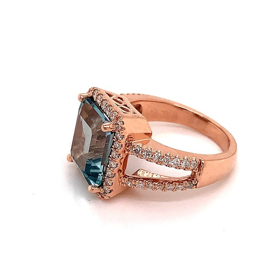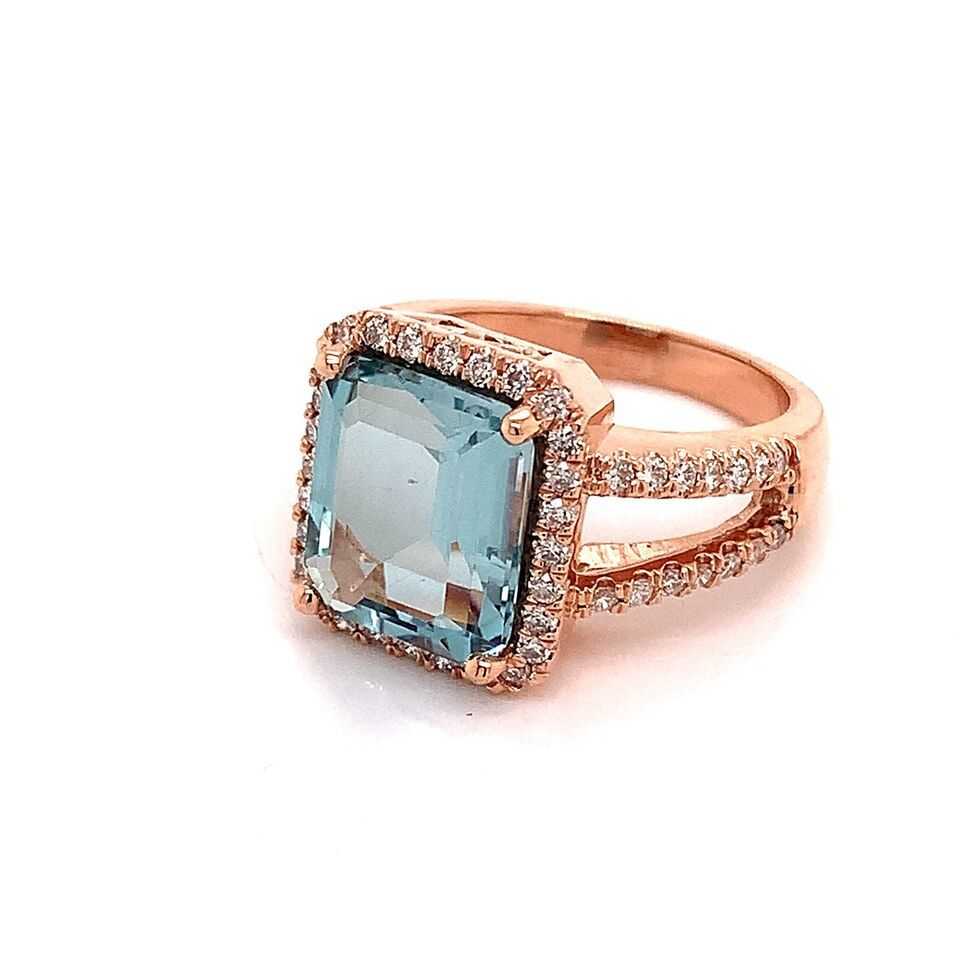 Authenticity Guarantee Diamond Aquamarine Ring Size 6.5 14k Gold 6.25 TCW Ce...