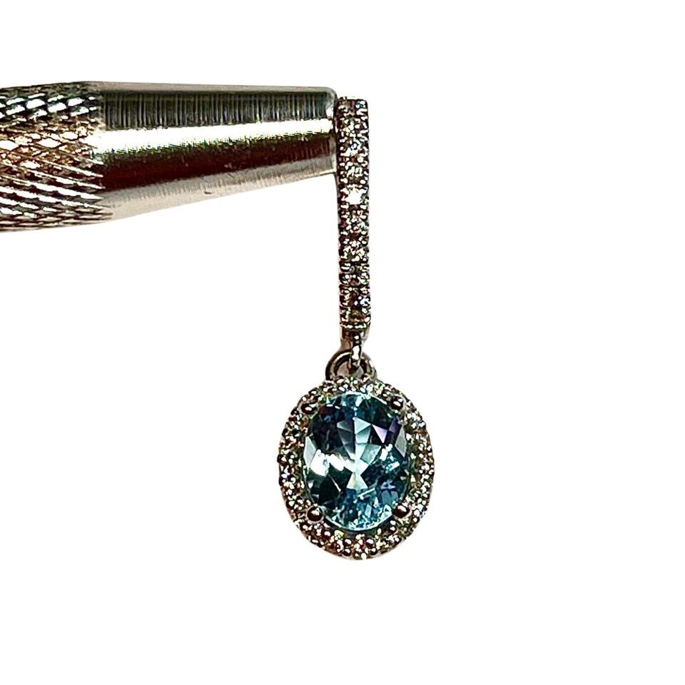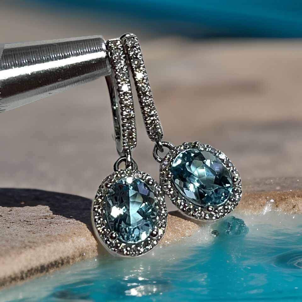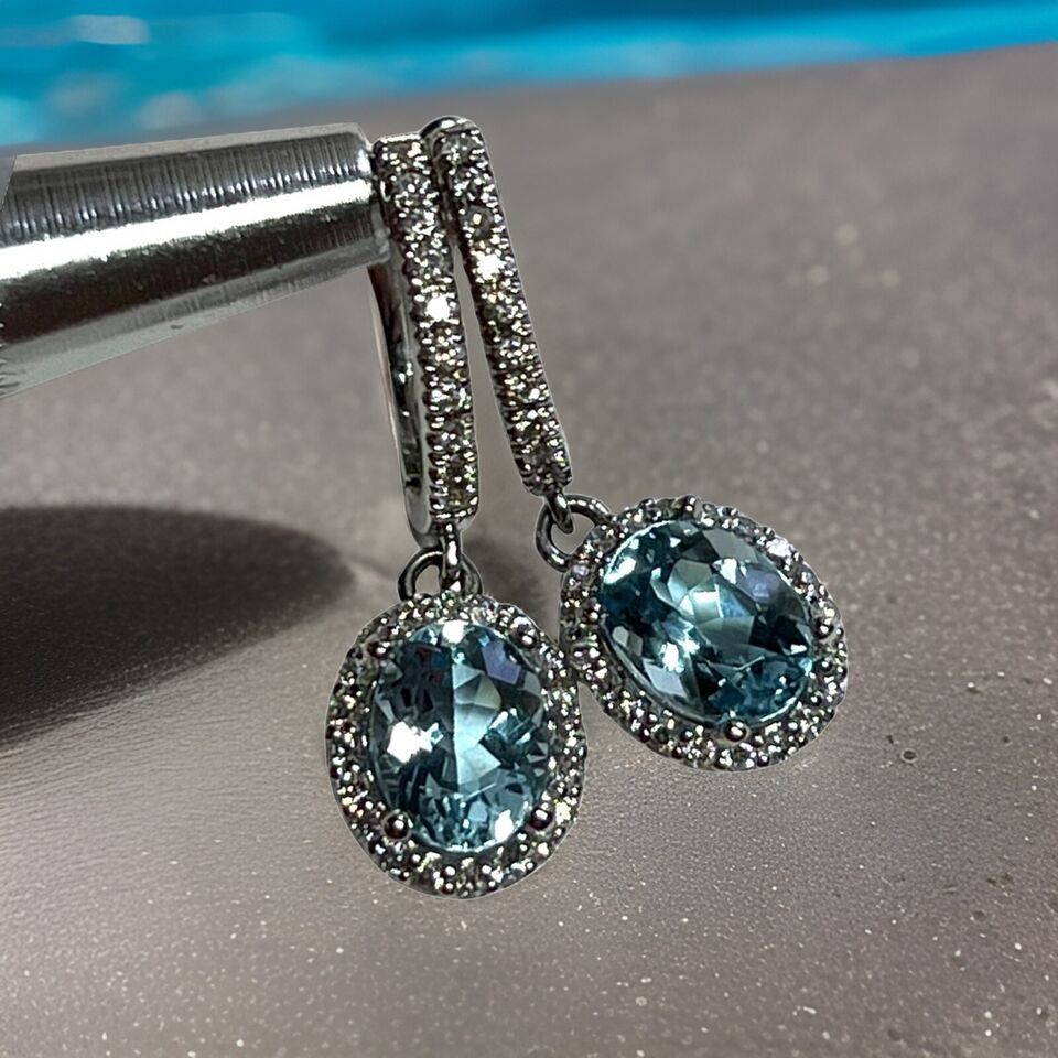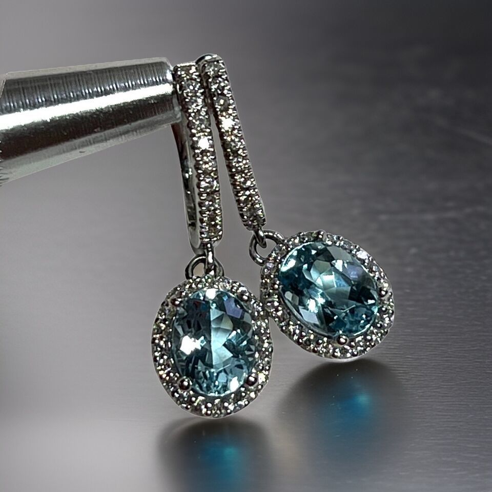 Authenticity Guarantee Natural Aquamarine Diamond Dangle Earrings 14k 2.55 T...
