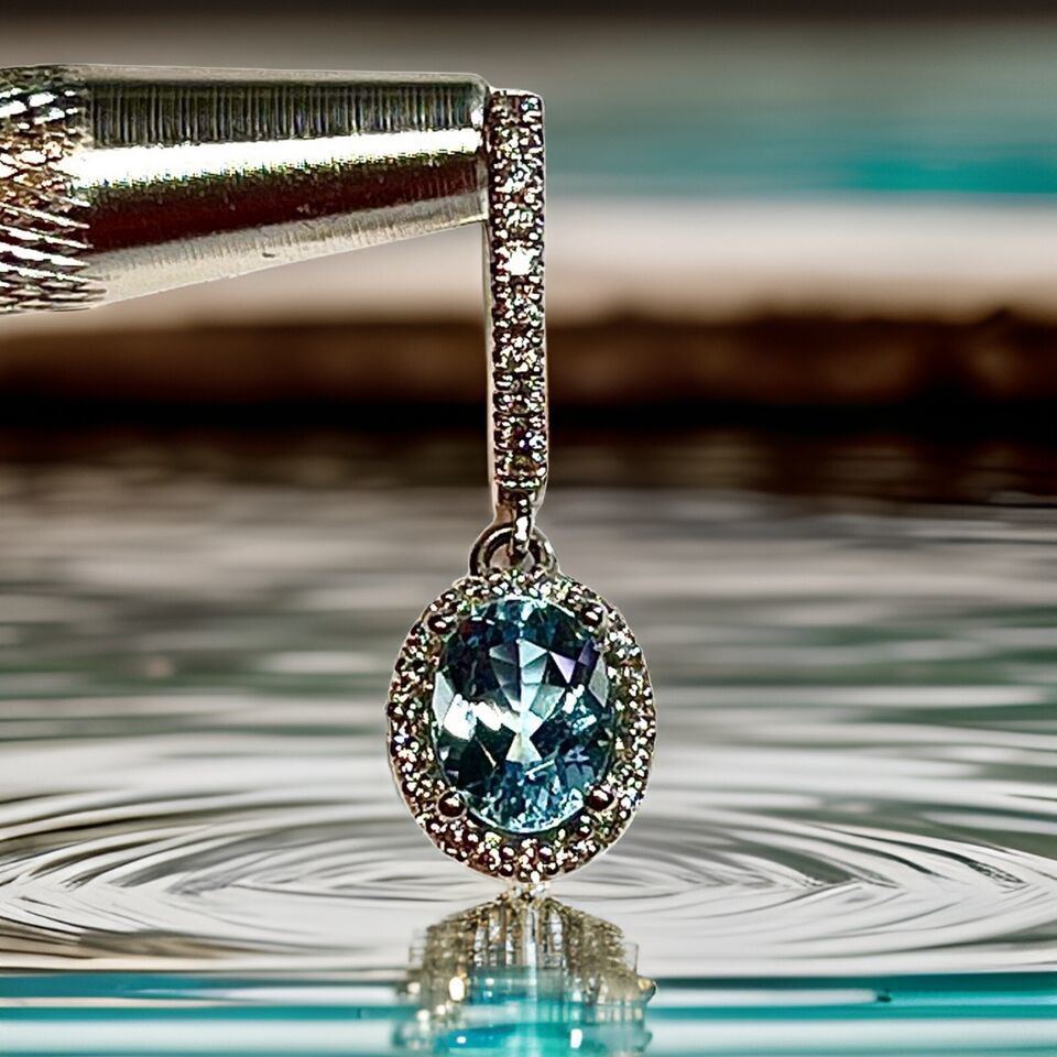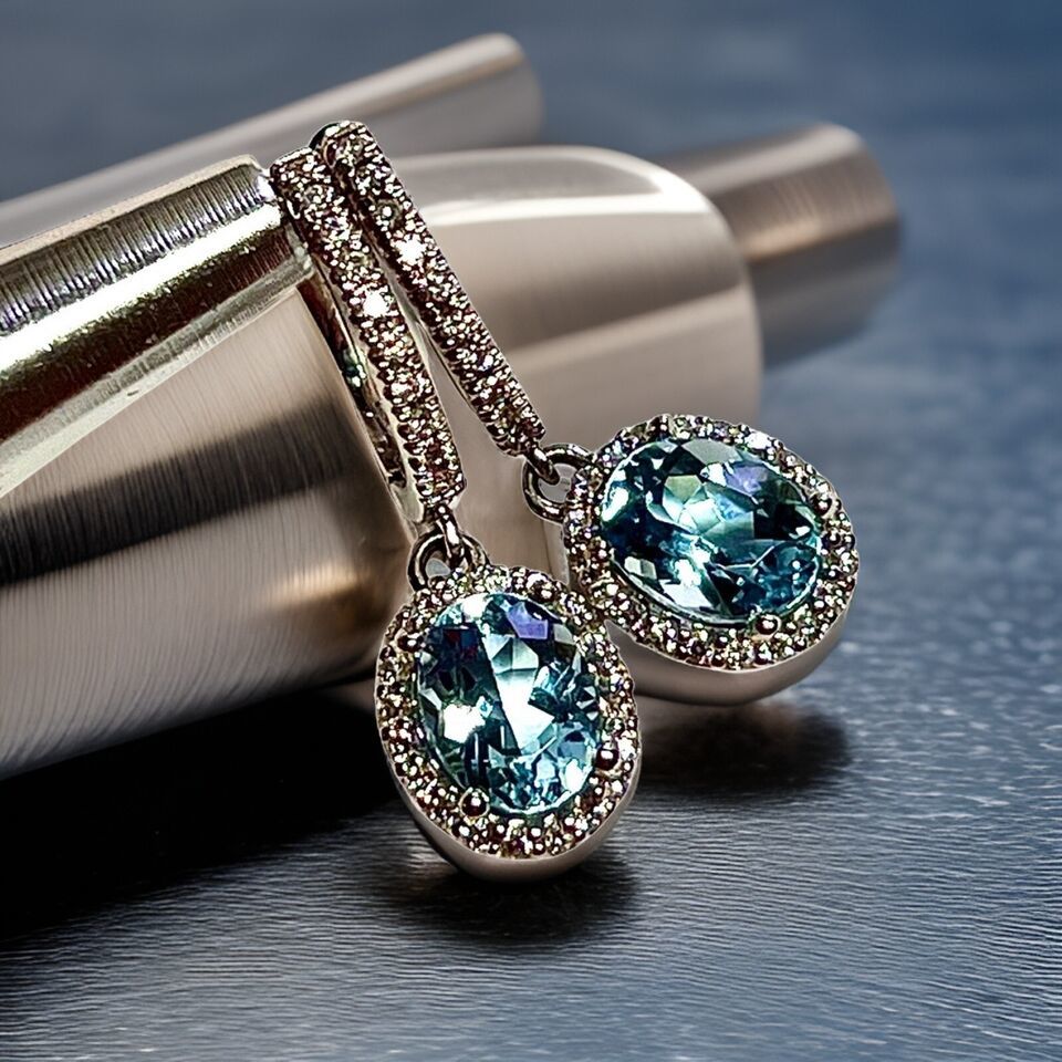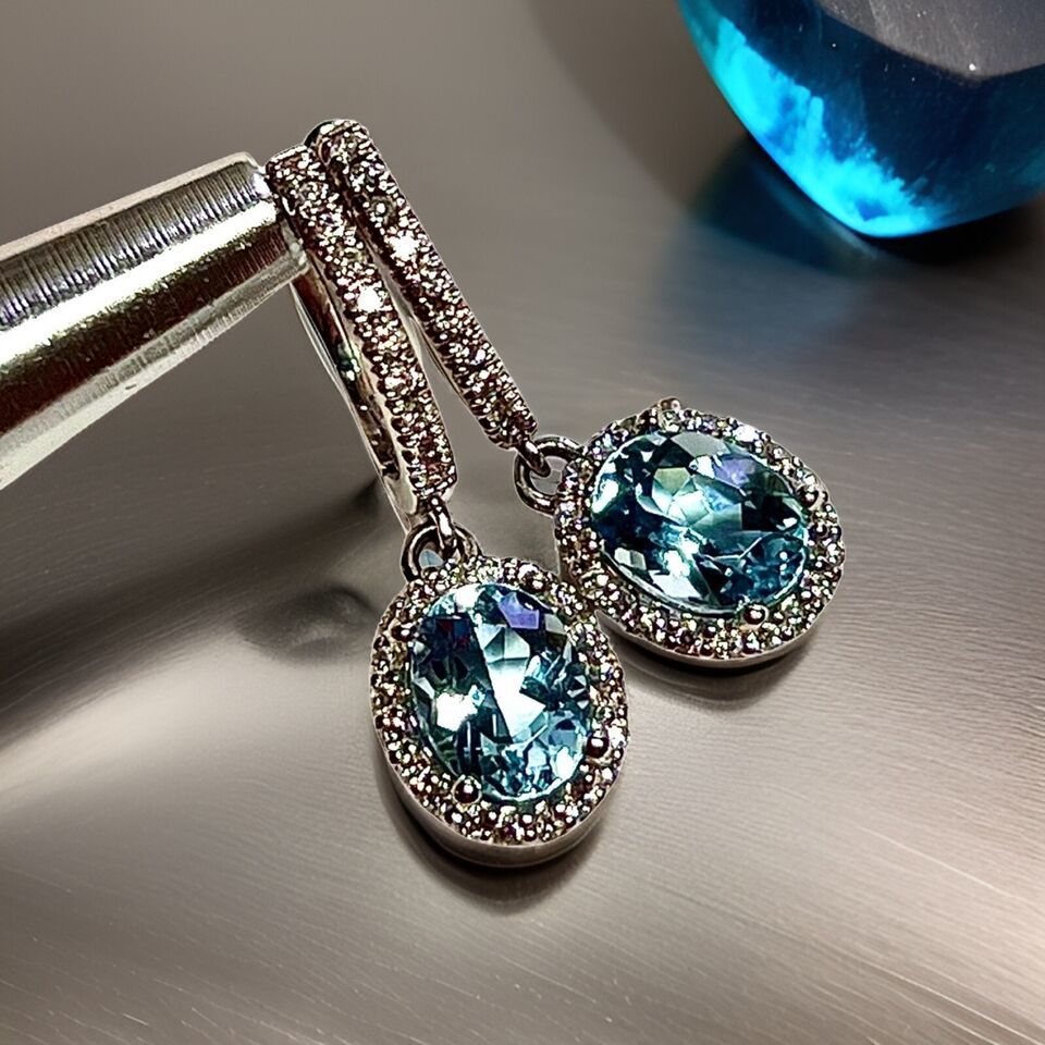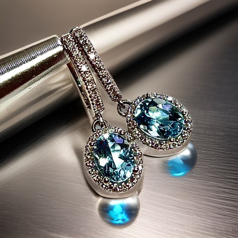 Authenticity Guarantee Natural Aquamarine Diamond Dangle Earrings 14k 2.55 T...