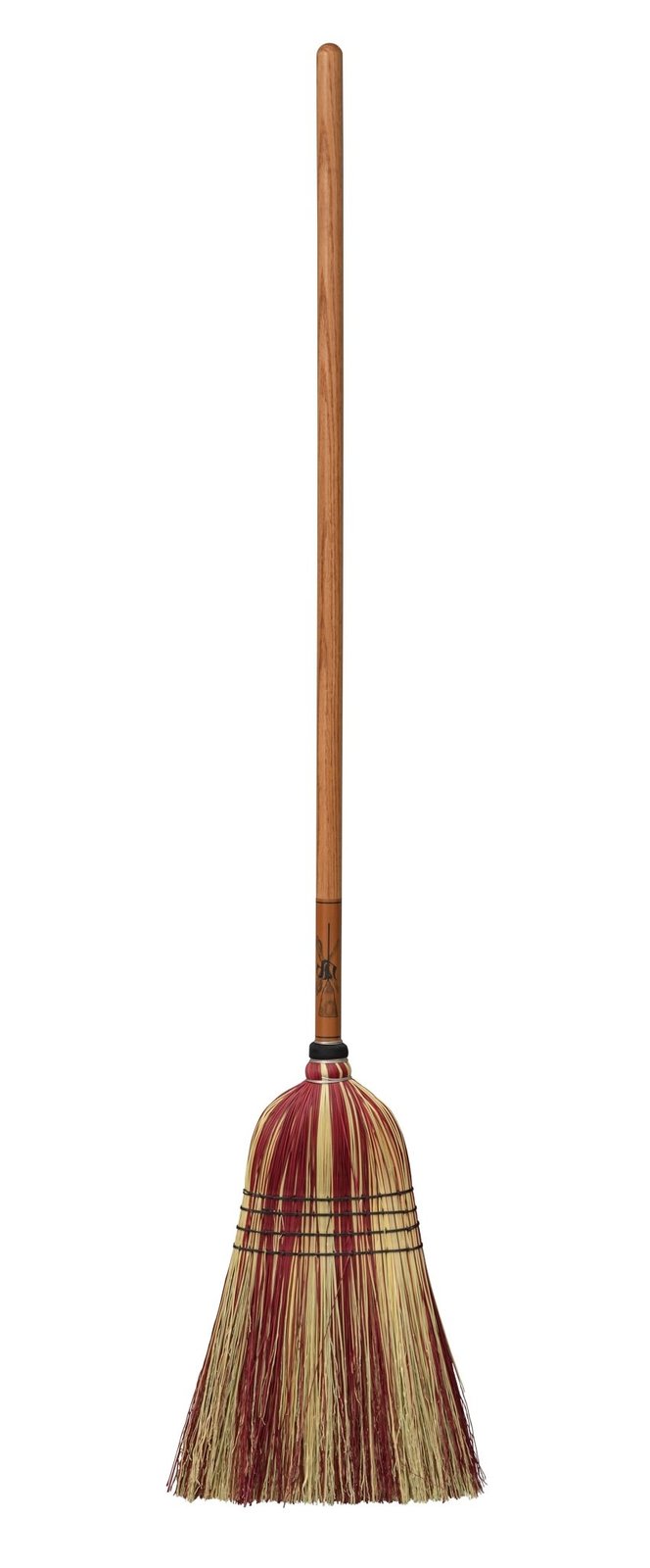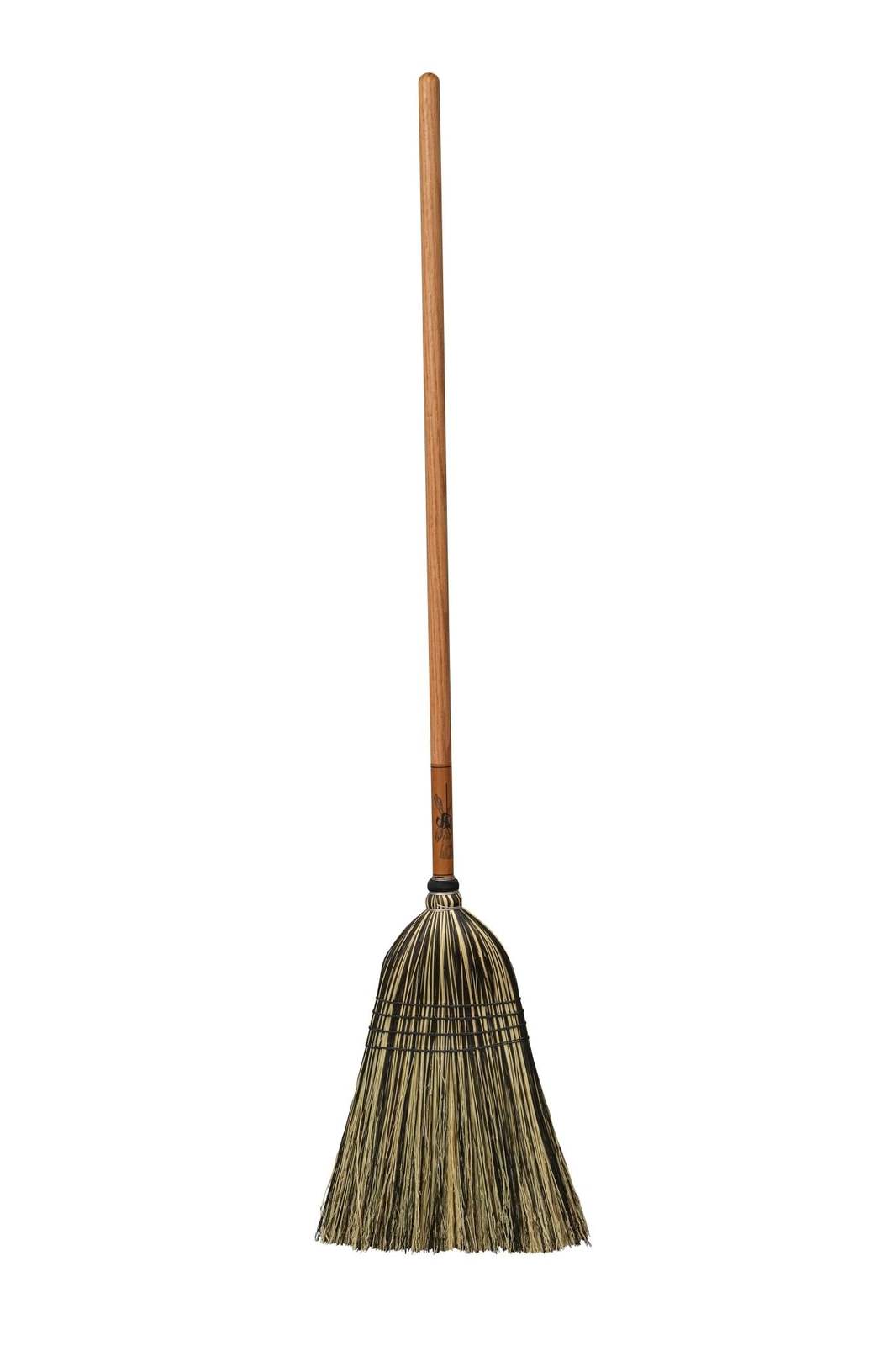 This broom utilizes sturdy twine to bind the fibers together into one cohesive tool that will withstand day-to-day use. It also features stiff, unflagged bristles, making it ideal for cleaning up larger debris in open areas. 56" long with a 17oe" broom head, 12" wide base and a 1" diameter solid oak handle for superior results and comfort. Their ability to stand upright on on the floor without support showcases their exceptional craftsmanship and design.
