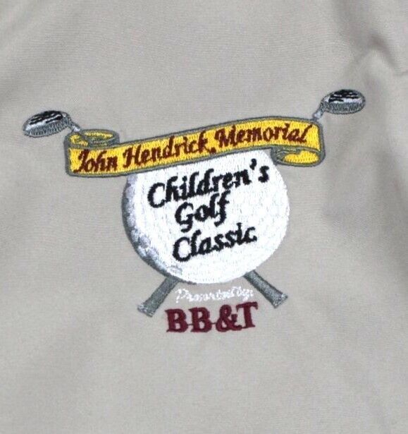 A classic beige golf vest designed for style and comfort, featuring an embroidered logo from the John Hendrick Memorial Children's Golf Classic. The vest includes practical pockets and is crafted by North End, known for quality outerwear. Ideal for golf enthusiasts seeking a sleek, professional look.