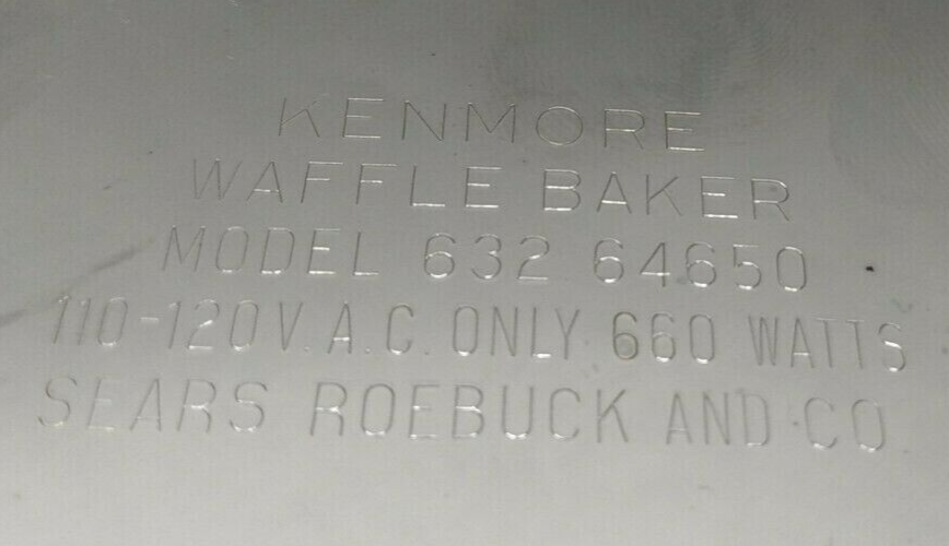 Kenmore Waffle Baker 632-64650, Kenmore Waffle Baker Model 632 64650 |
