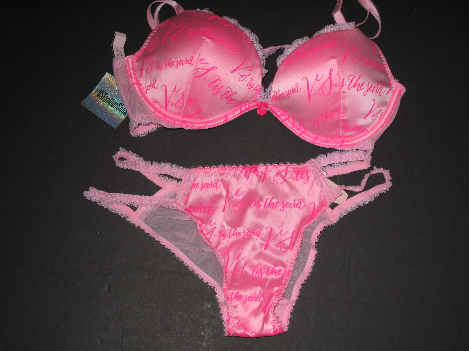 NWT Victoria's Secret Fashion Show Dream Angels Pink Satin Logo Demi Bra Set