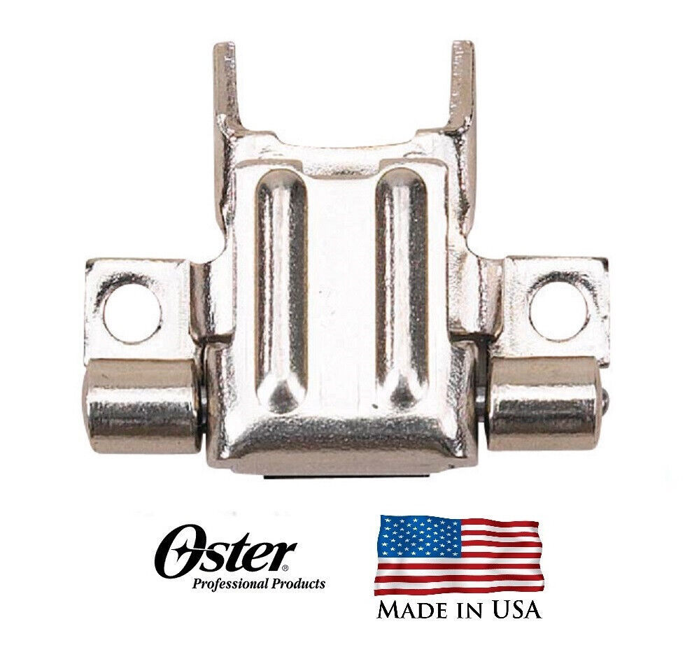 Replace the hinge assembly on your Oster clippers yourself and eliminate the need to send valuable equipment out for maintenance and repair. The hinge assembly is the silver hinge that the blade slides onto to secure it to the Oster clipper. The Replacement Blade Latch Lock is the rectangular metal frame that must be depressed when removing and applying blades. This part does not include hinge screws.