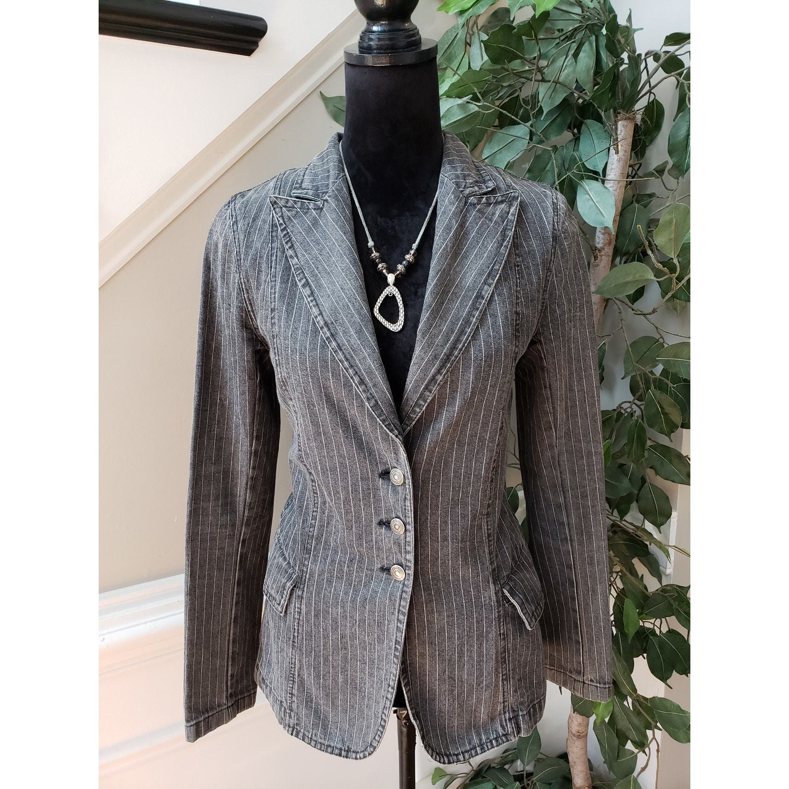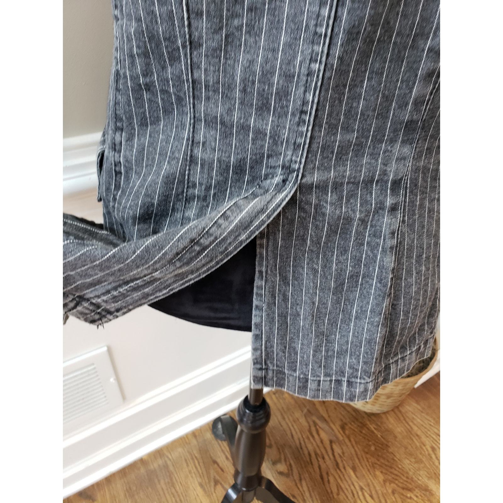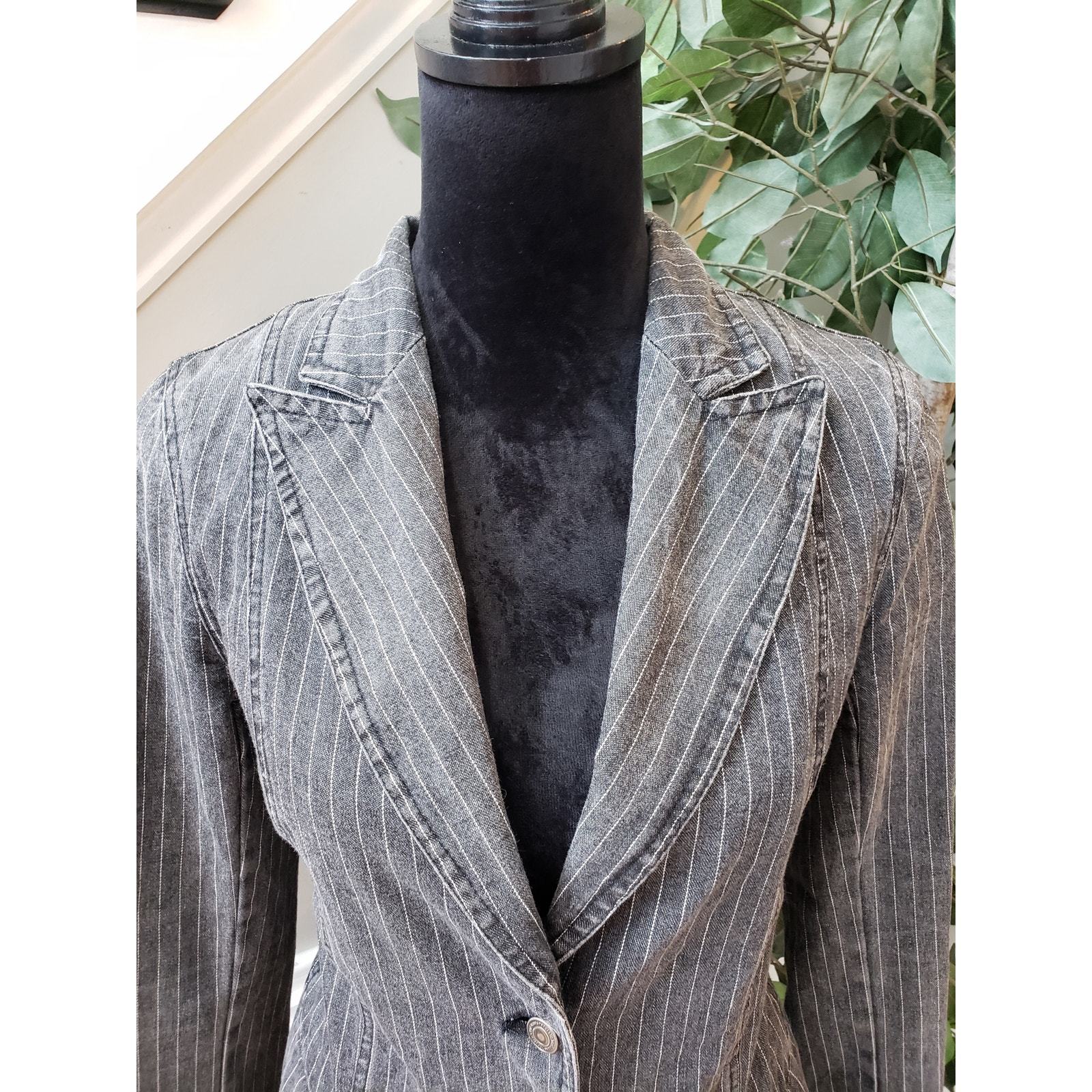 Carol's Denims Blazer Jacket Women Small Gray Striped Peak Lapel Single Breasted