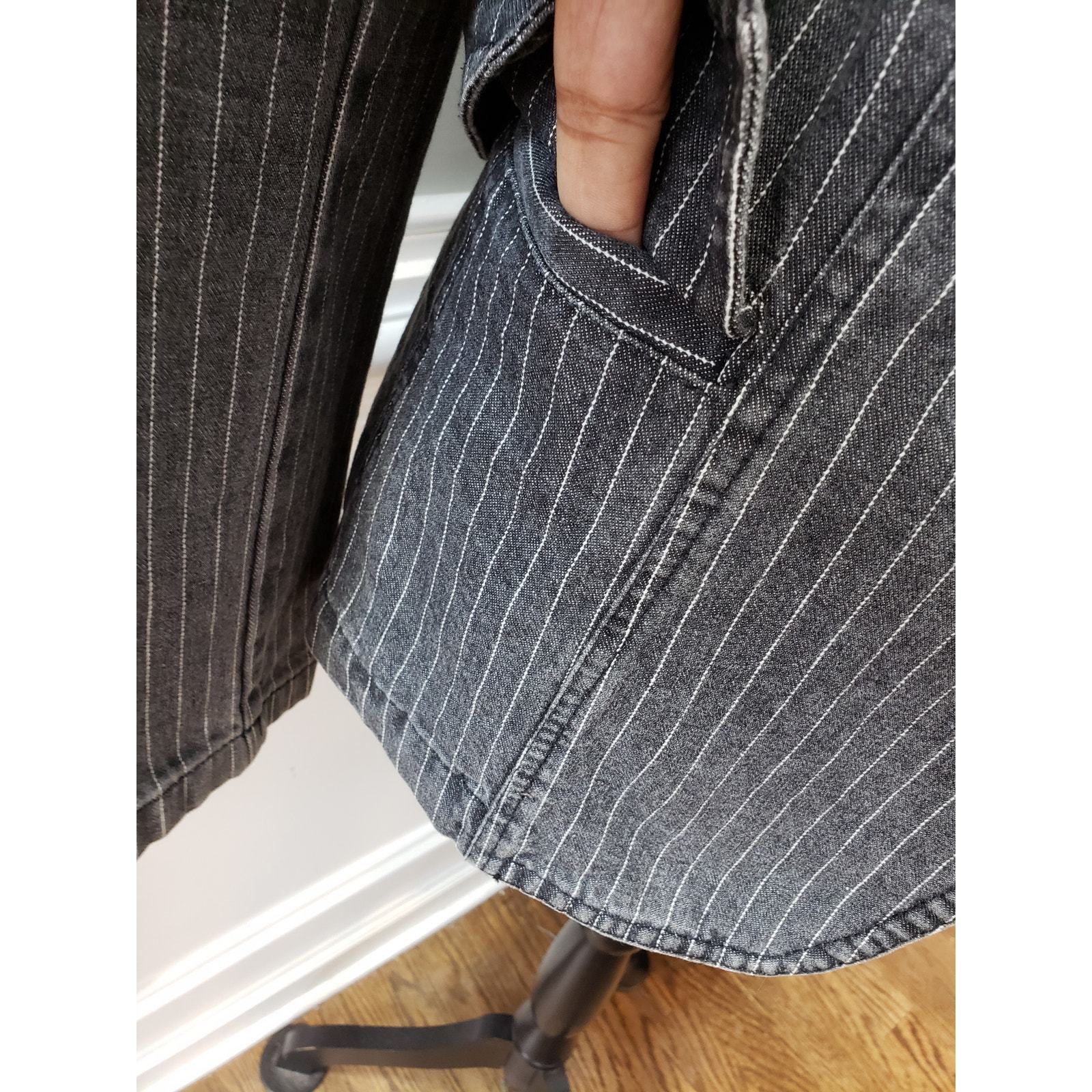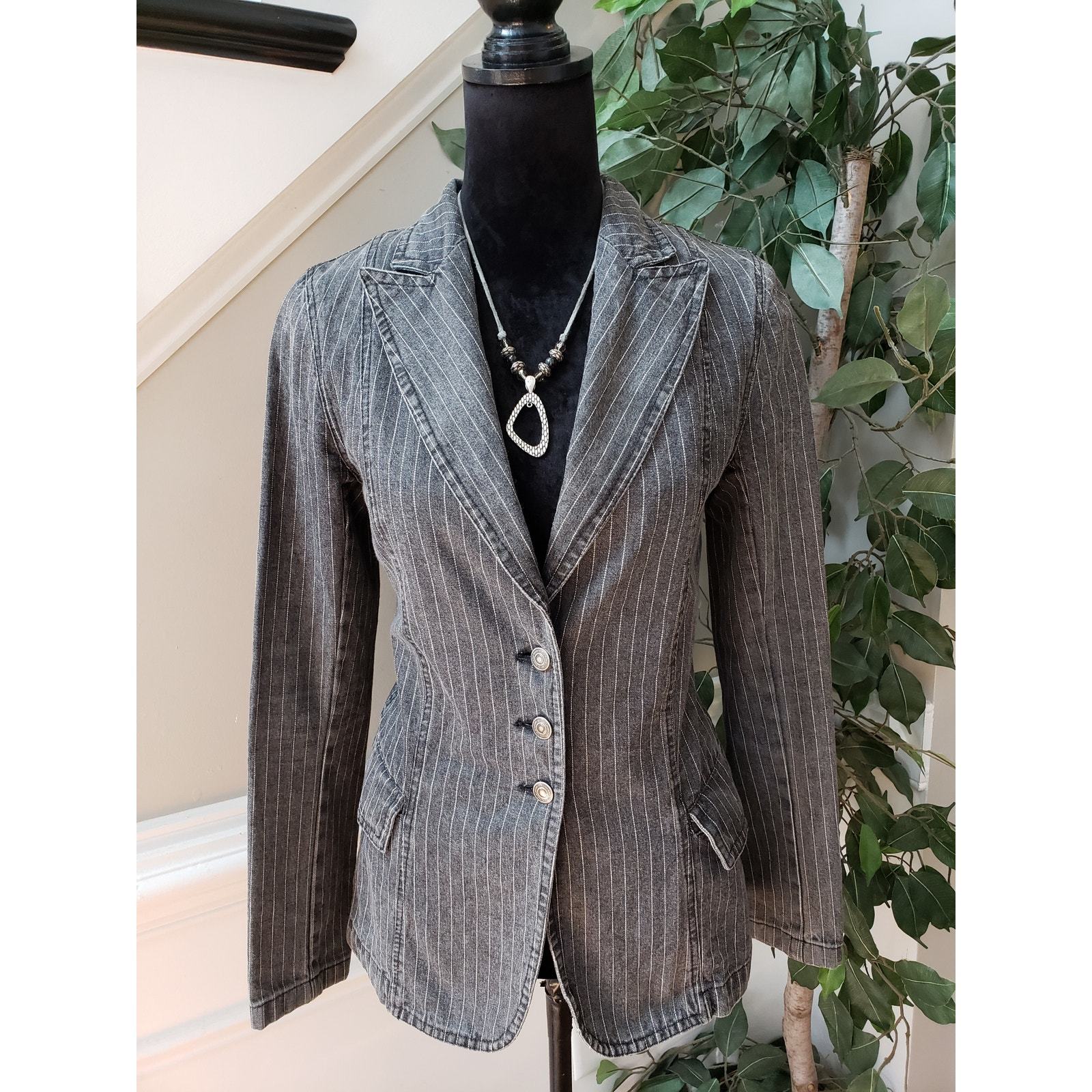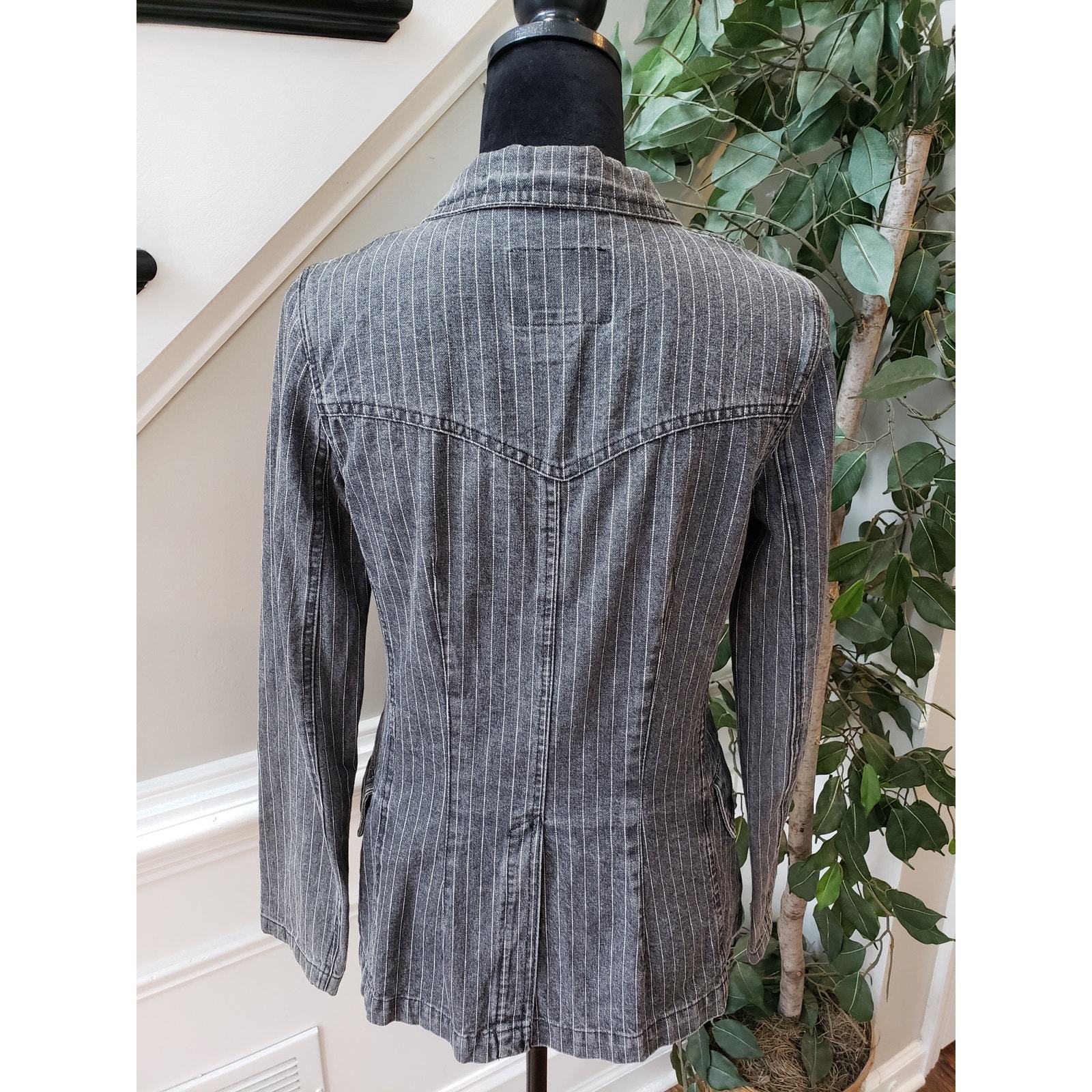 Carol's Denims Blazer Jacket Women Small Gray Striped Peak Lapel Single Breasted
