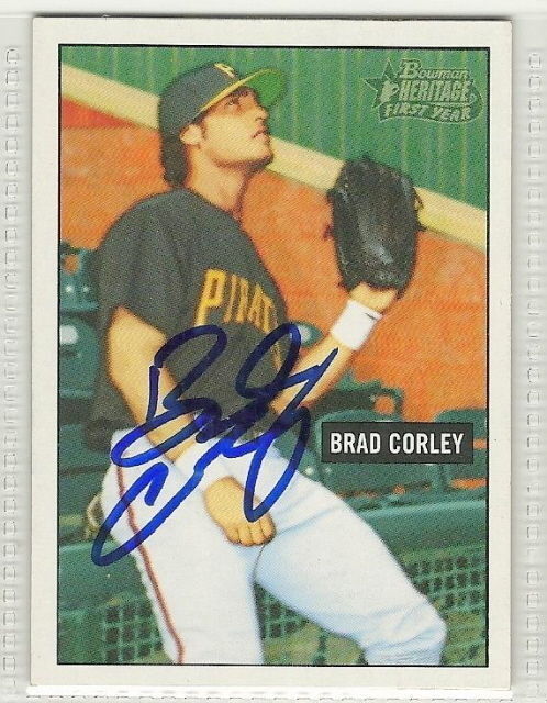 For Sale is a brad corley signed autographed card 2005 bowman heritage. all autographs are obtained in person at games, practices, golf tournaments, airports, theaters, arenas, airports. it will be accompanied by a COA from our company. Please ask Any and All Questions prior to purchasing. Fast Same or Next day shipping with Free Delivery Confirmation within the U.S. Payment Due within 7 days of purchase (if you need more time please let us know In advance) we love to combine shipping is always a Yes and Most of the time Additional Items Ship for free.
