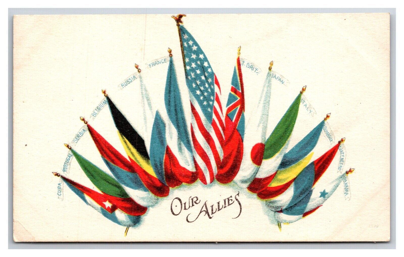 World War 1 WW1 Our Allies Flag Display UNP DB Postcard F23