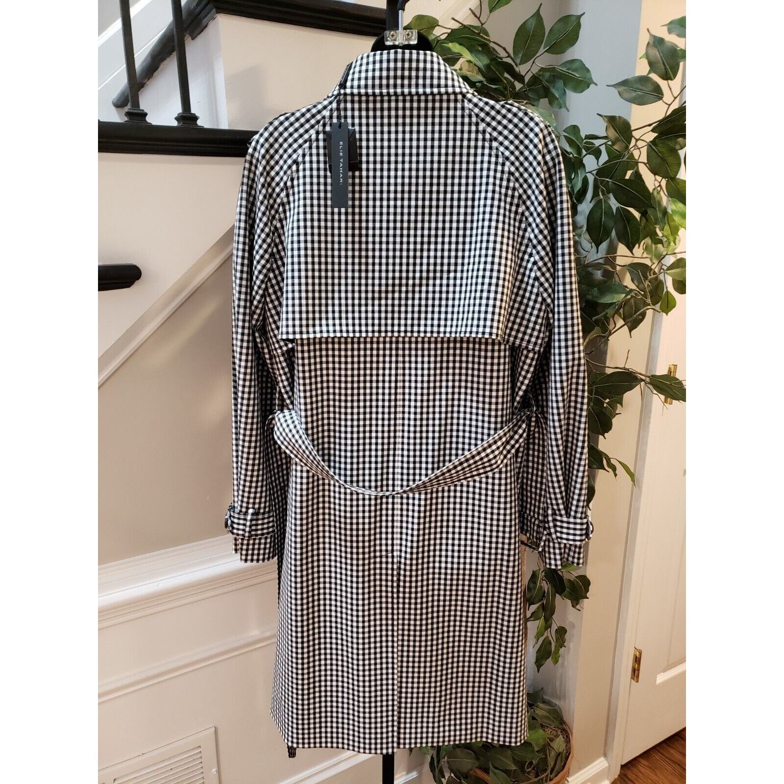 Elie Tahari Womens White Check Polyester Belted Lagoon Trench Coat Jacket Medium