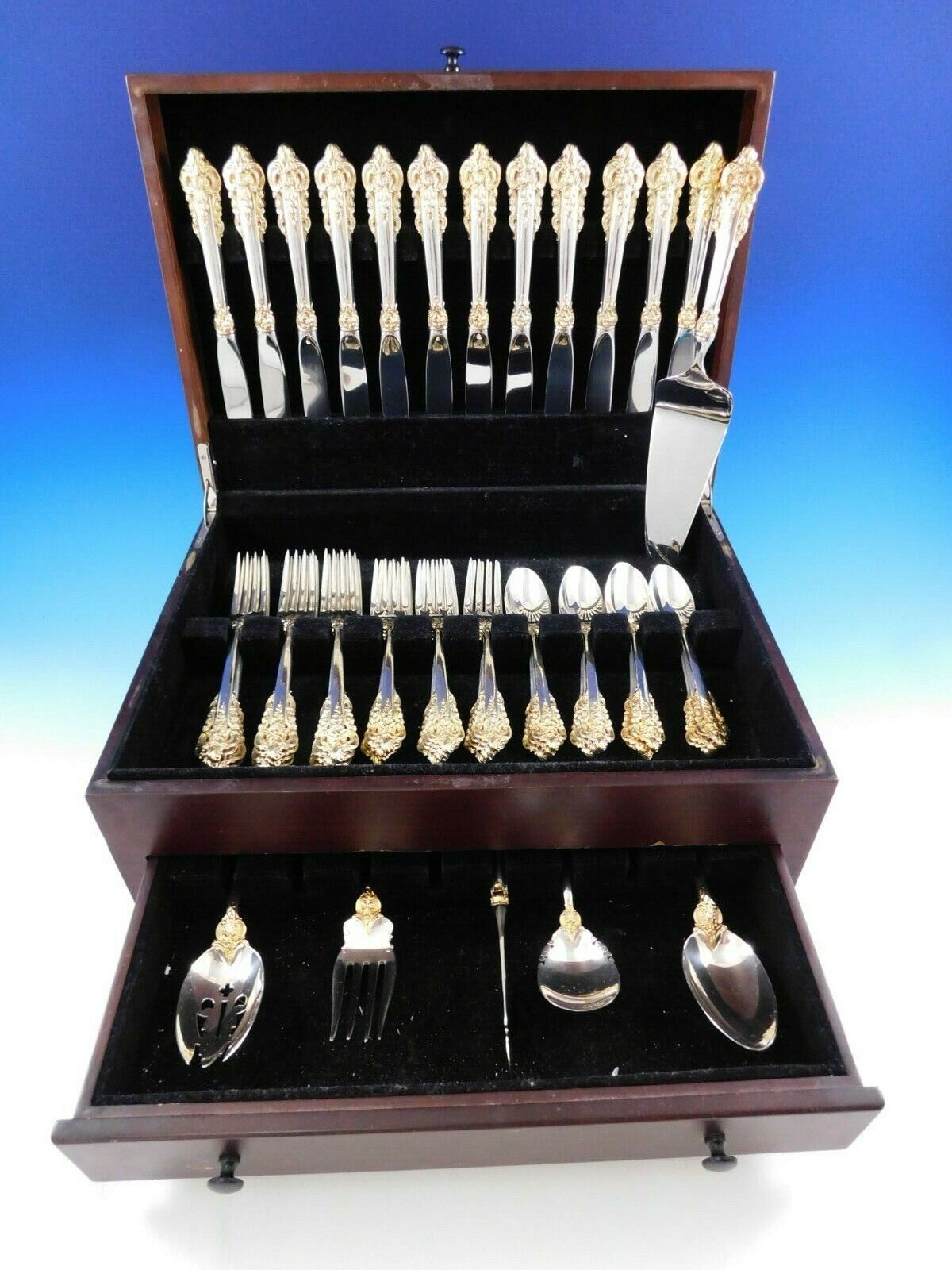 Gold Accent Grande Baroque by Wallace Sterling Silver Flatware set - 54 pieces. This set includes: