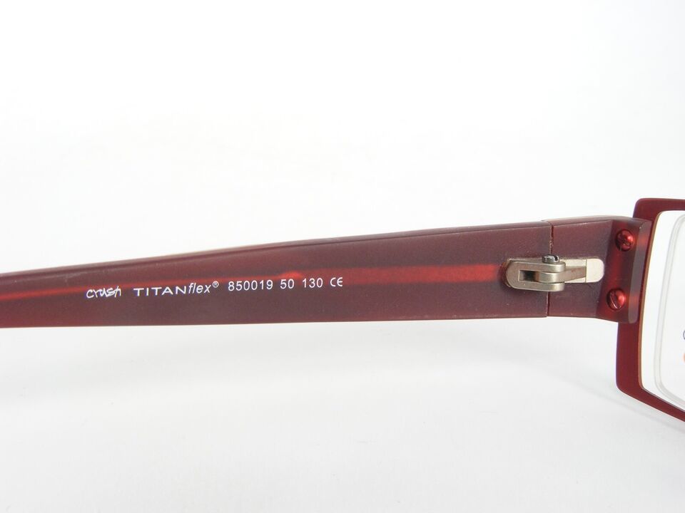 ESCHENBACH CRUSH TITANflex 850019 50 RED EYEGLASSES GLASSES 50-20-130mm. (X477) Actual photos of these glasses. This is exactly what you will receive. Notes: NEW Eyeglasses but have a small scratch on the top and therefore the cost is reduced. Please look the photos. Style and comfort in everyday use. A pair of glasses is not just an accessory; it provides the first hint of an individual?s personality. The wearer must enjoy a frame and feel that it is completely consistent with his or her look and mindset. A great pair of glasses, with all its detail and complexity must above all be an extension of the individual. Returns are always FREE for any reason. If you don't like it, simply click "Item no longer needed". Item should be returned within 60 days as UNUSED in original packaging. If