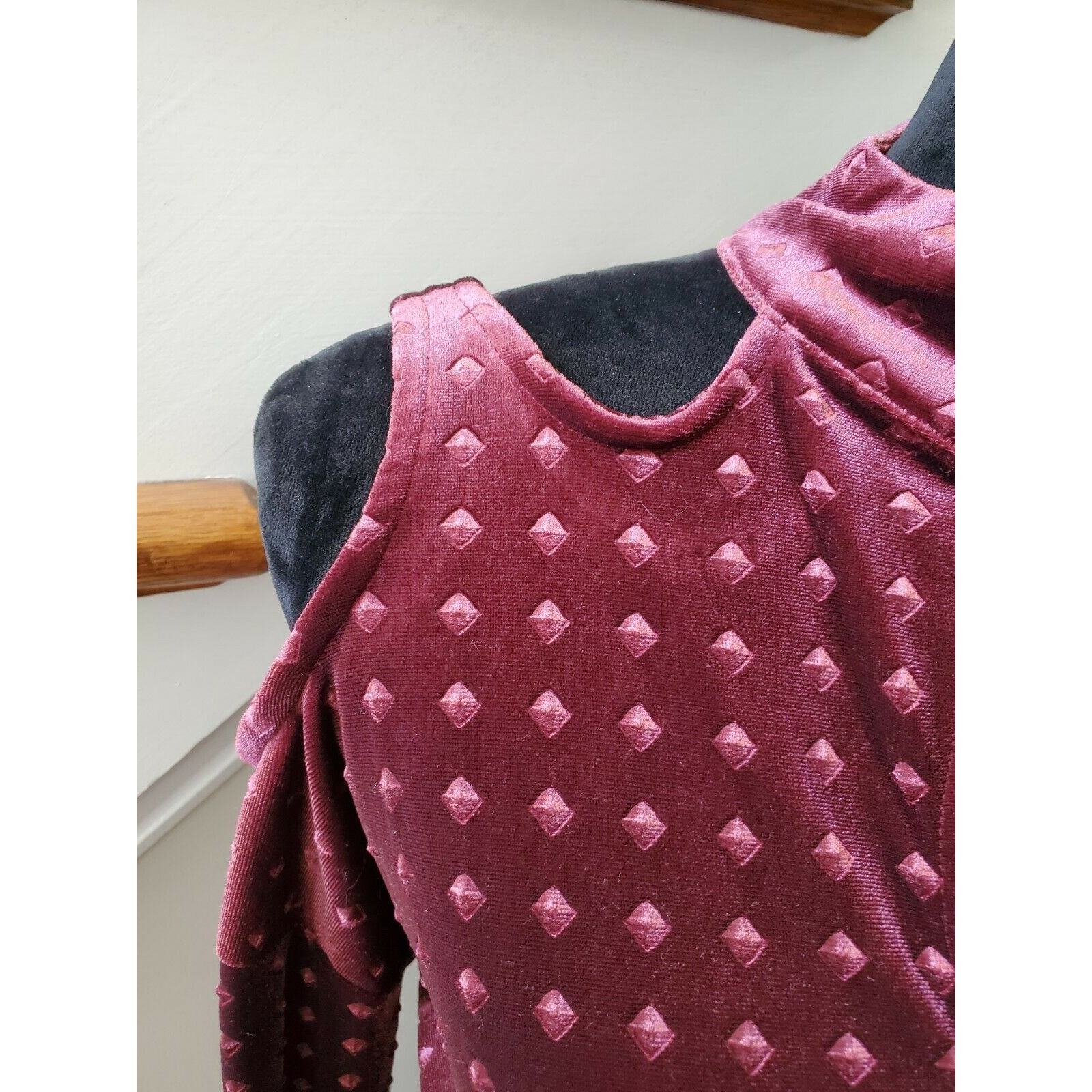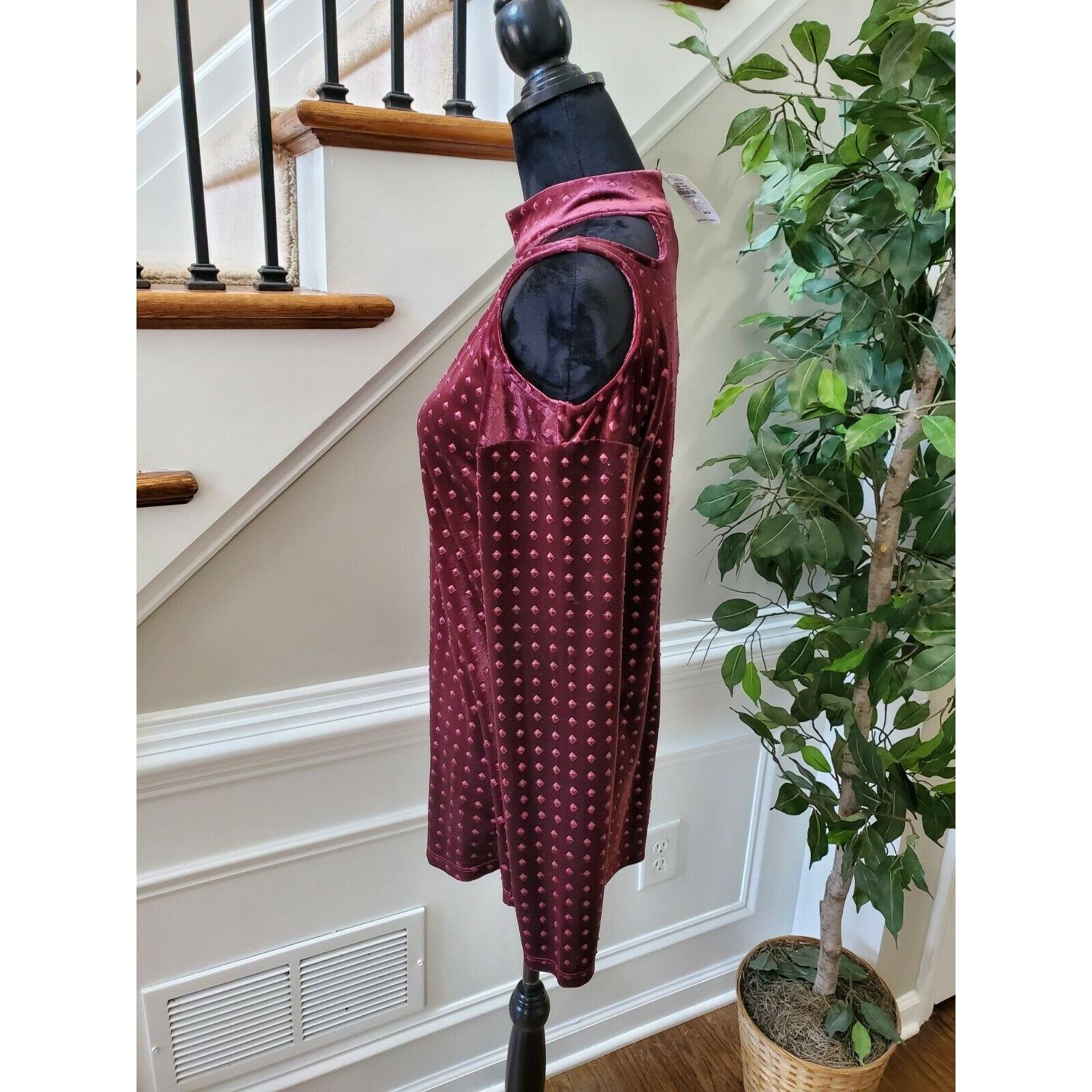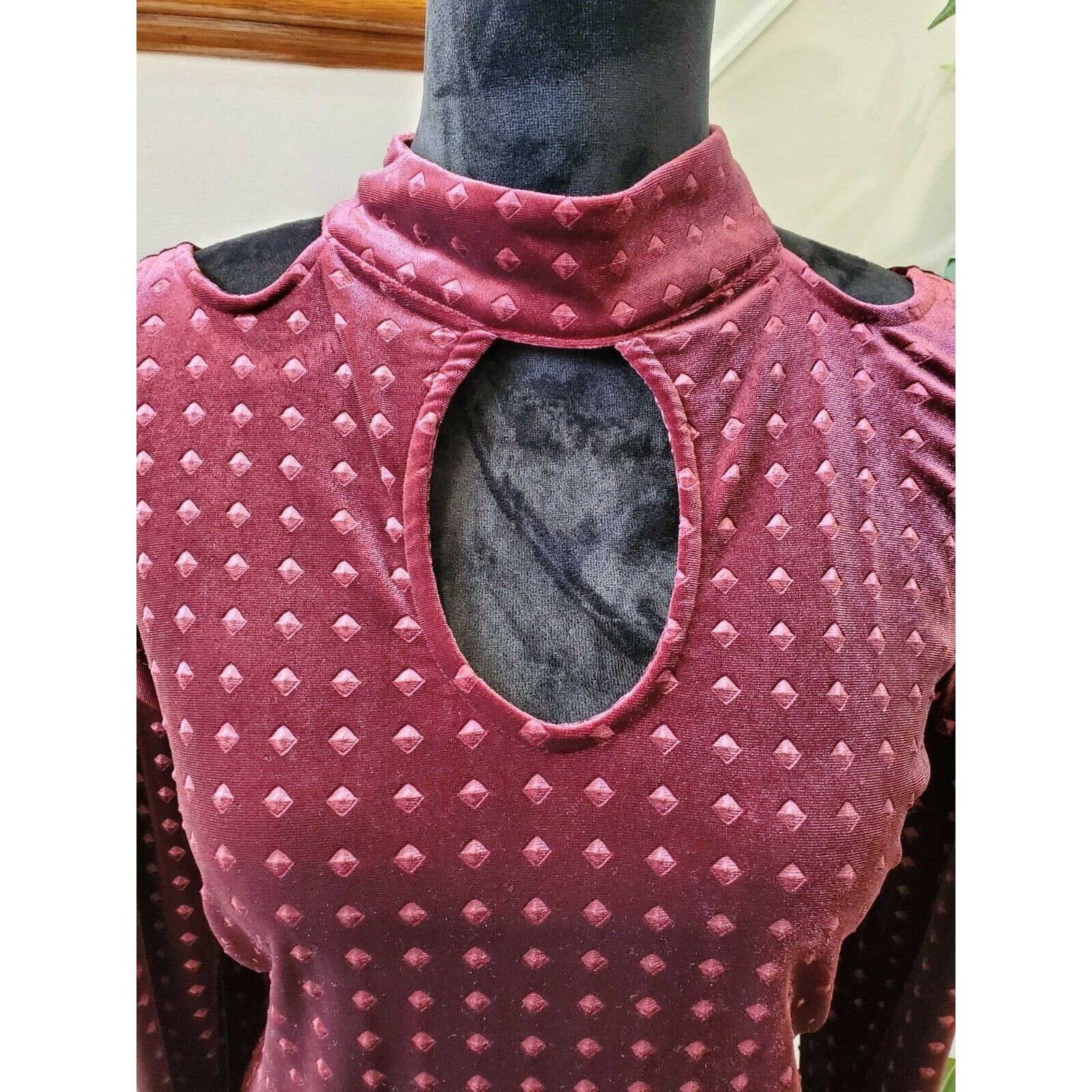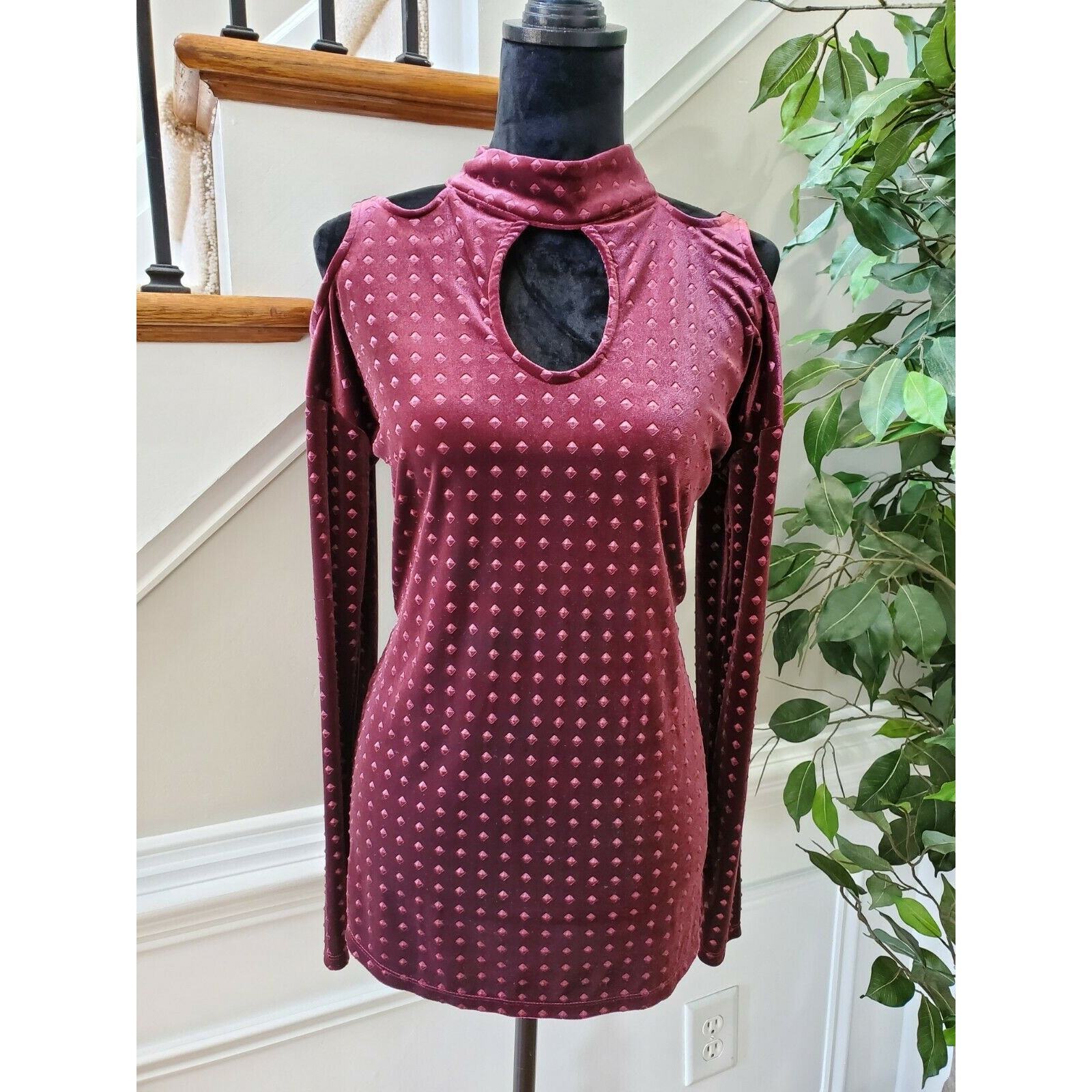 Love Scarlett Women Burgundy Polyester Long Sleeve Mock Neck Casual Top Shirt M