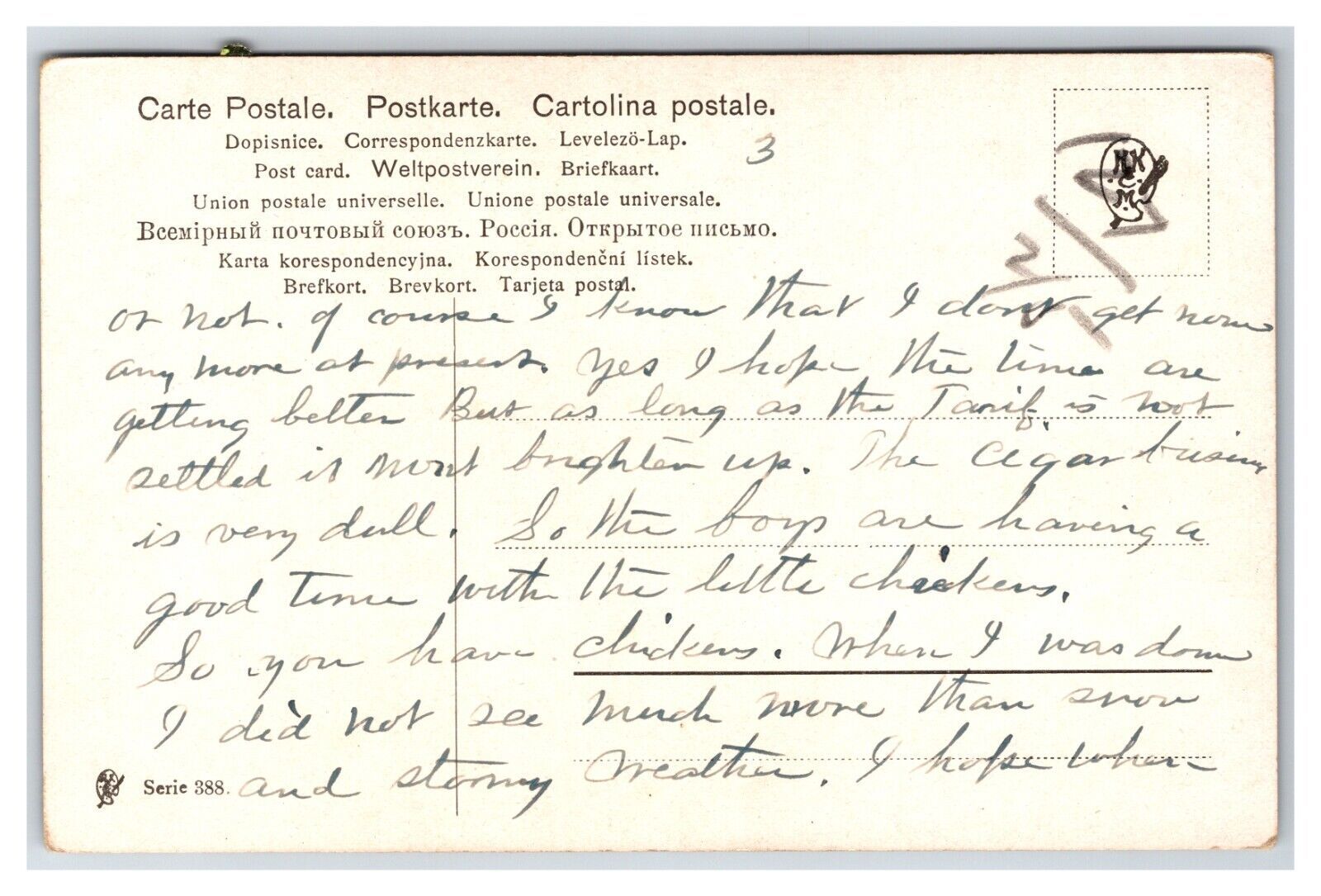 Normal wear associated with an old postcard it might have creases, a corner bump, ink on the front etc.
