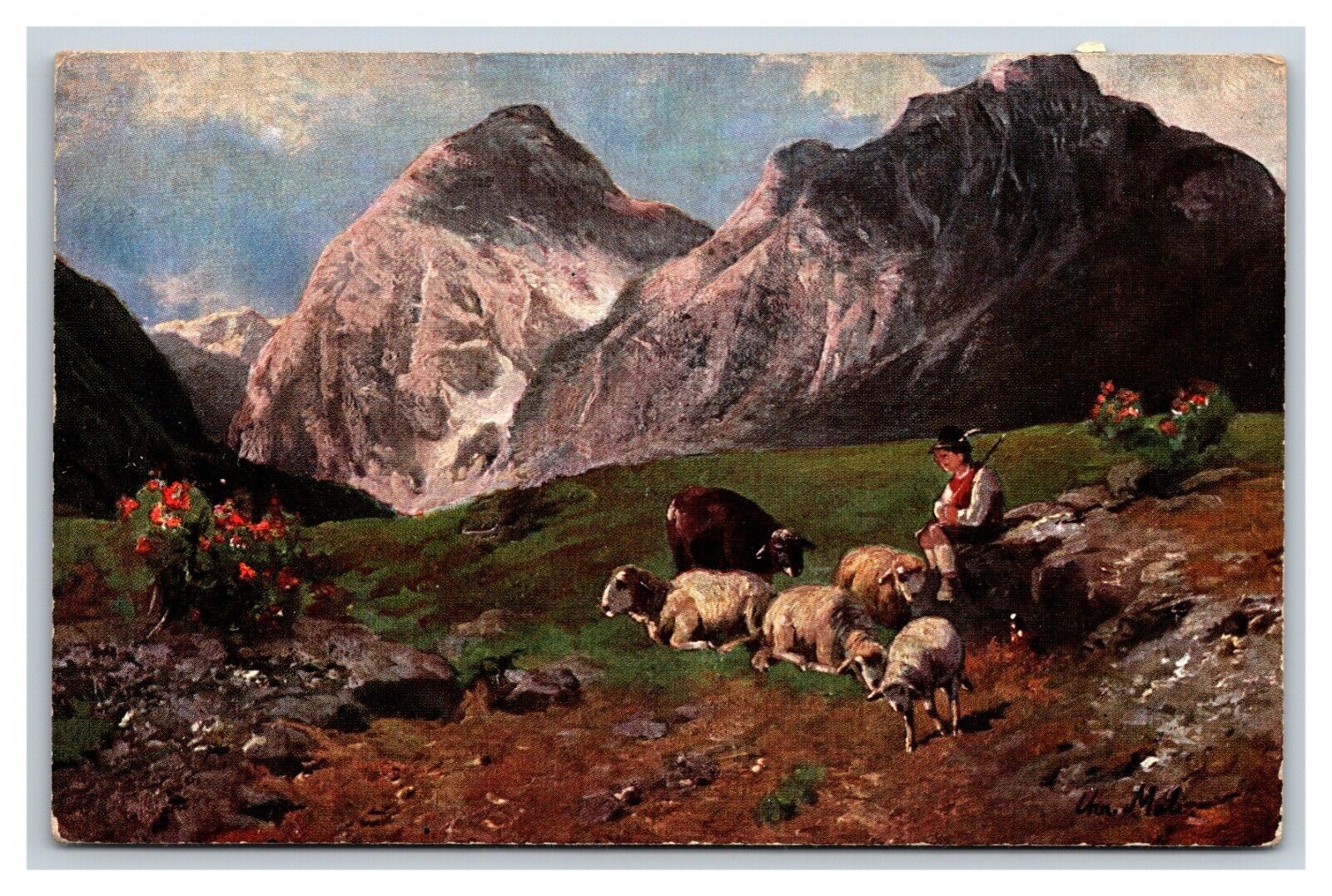 Christian Friedrich Mali Painting Shepherd Sheep Alpine Scene DB Postcard T6