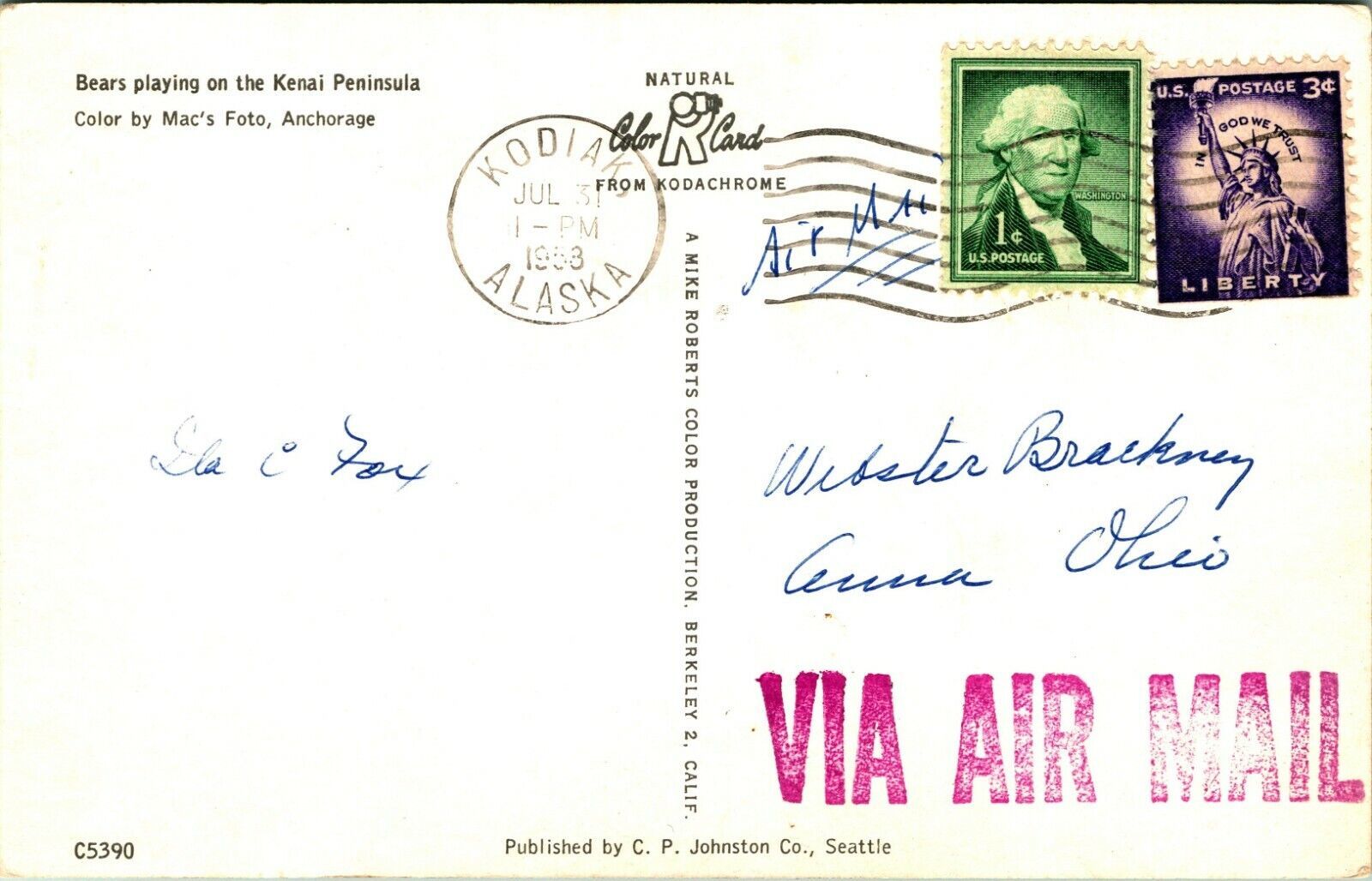 Bears Playing on Kenai Peninsula Alaska AK 1968 Chrome Postcard B1