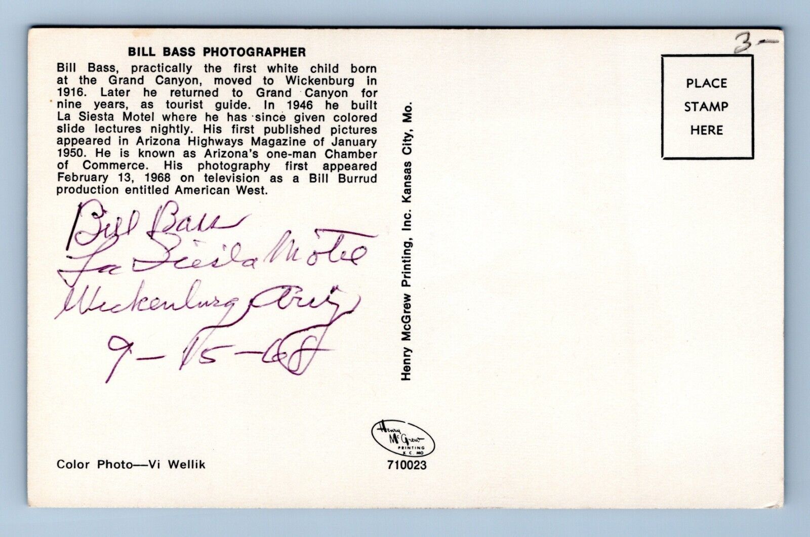 Bill Bass Famous Photographer Grand Canyon Arizona AZ UNP Chrome Postcard N11