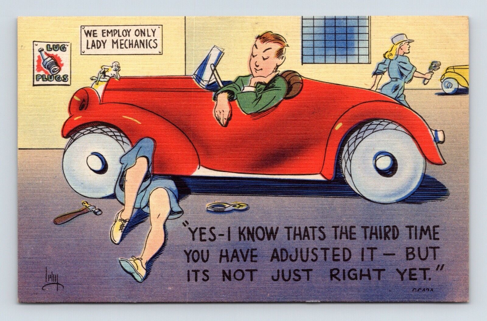 Auto Comic Keeps Going Back For Repair Lady Mechanics UNP Linen Postcard N5