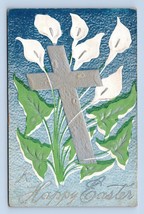 A Happy Easter Cross Flowers Foiled Embossed 1910 DB Postcard K14