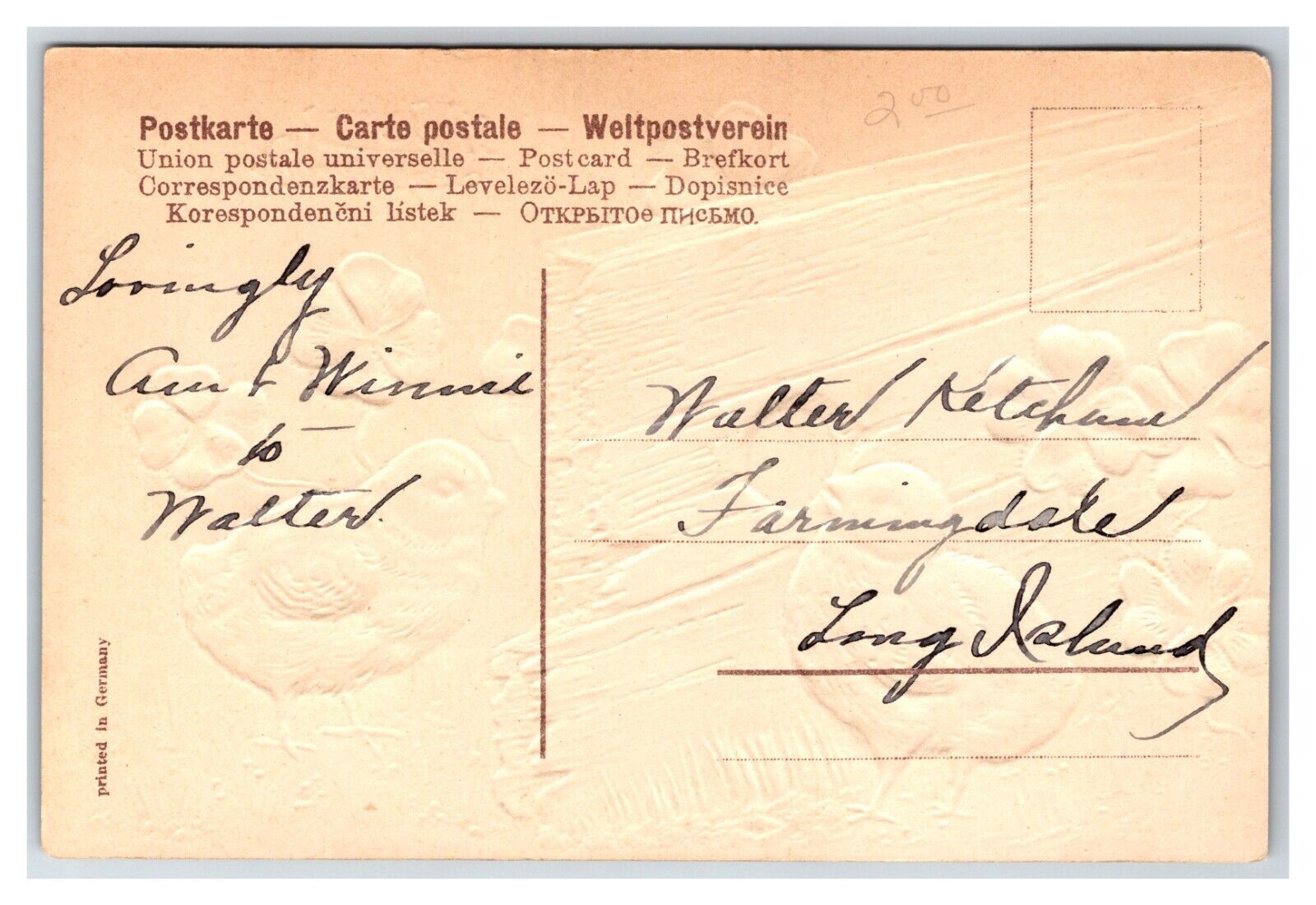 Chicks Looking Throgh Hole in Fence Joyous Eastertide Embossed DB Postcard S6