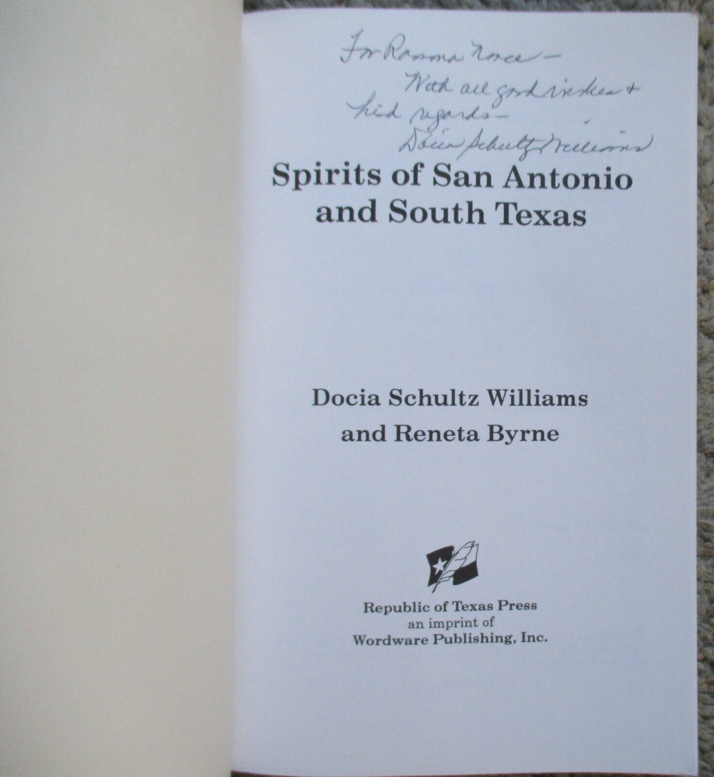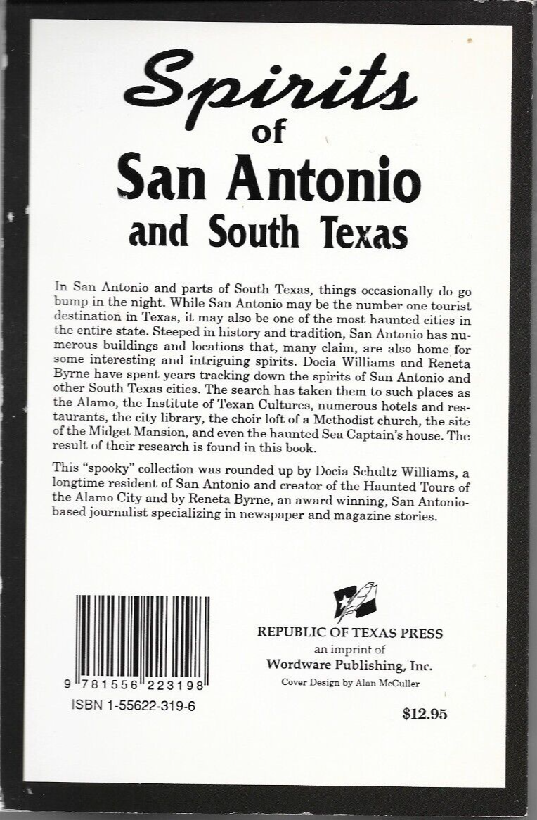SPIRITS OF SAN ANTONIO AND SOUTH TEXAS (1993) Docia Schultz Williams SIGNED TPB