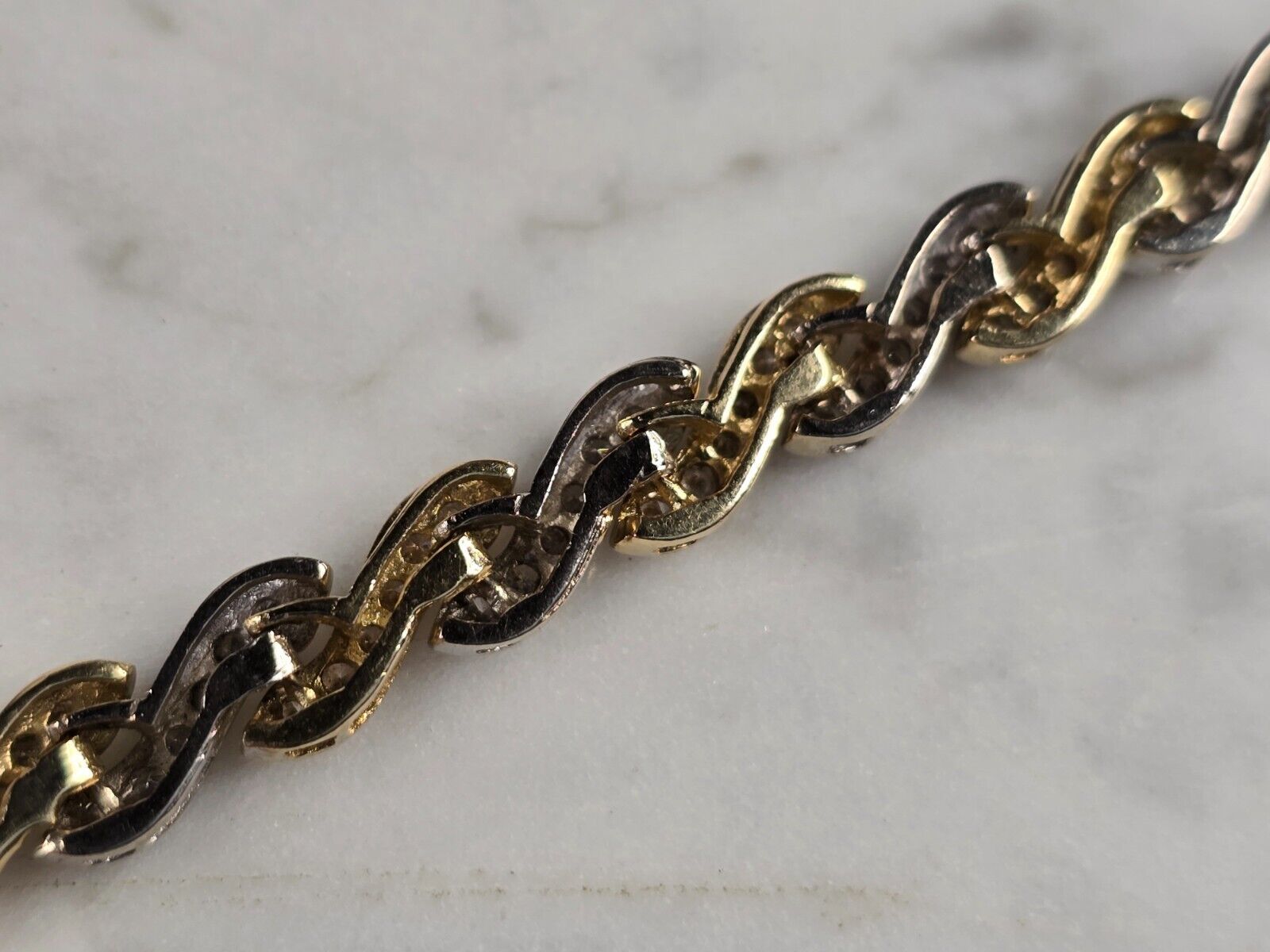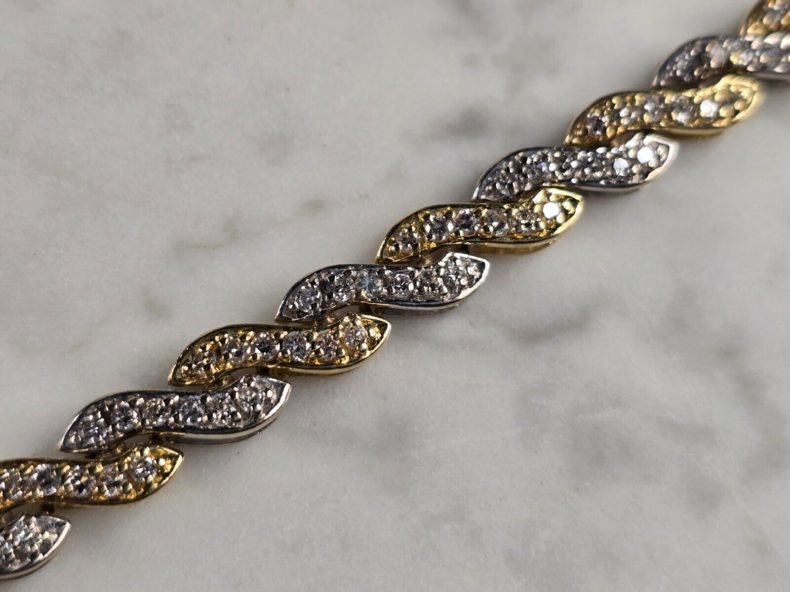 Womens Vintage Estate 14K Gold Diamond Tennis Bracelet 16.7g E7970